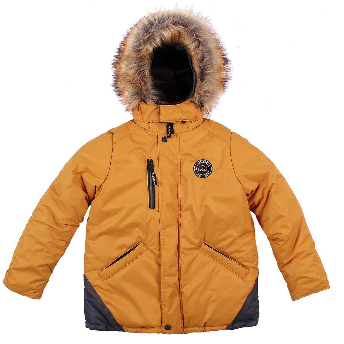 Размер 128 соответствует росту около 128 см. Ткань верха — мембрана для водо- и ветрозащиты. Подкладка включает 100% хлопок в трикотаже для комфорта, флис и полиэстер для утепления. Опушка на капюшоне — 100% полиэстер. Куртка оснащена манжетами, полукомбинезон — напульсниками и бретелями с регуляторами. Цвет: куртка горчичная с серыми элементами, полукомбинезон тёмно-серый. Материалы экологичны и подходят для машинной стирки при соблюдении рекомендаций по уходу. Этот комплект сочетает надежность и удобство, помогая ребенку оставаться в тепле и сухости, пока он исследует зимний мир.