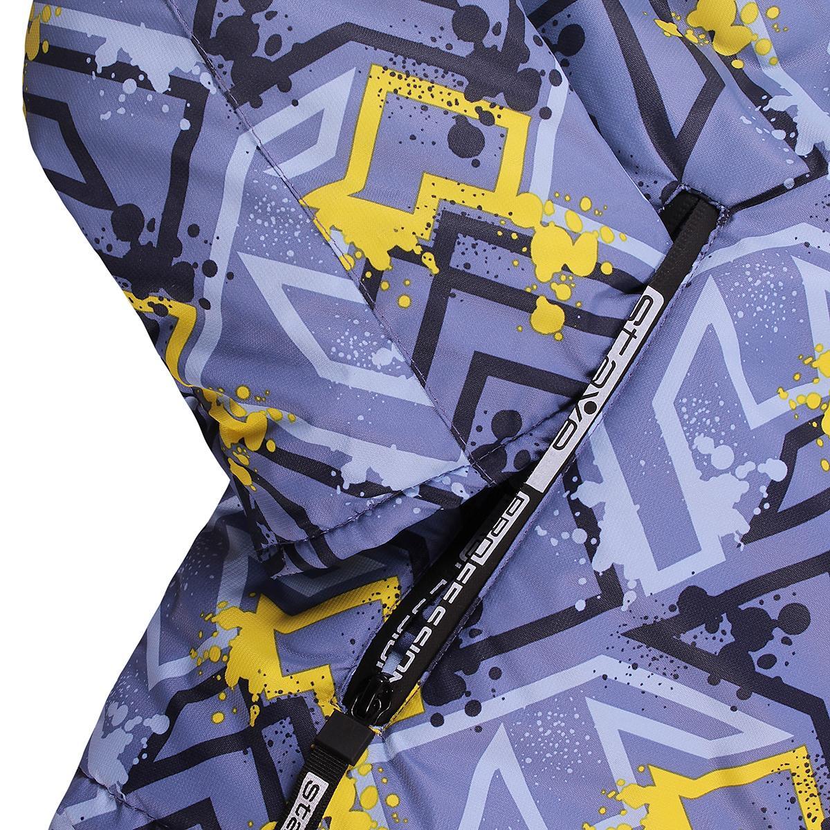 Современный комплект с надёжной защитой от холода, влаги и ветра обеспечит комфорт вашему ребёнку в любую непогоду. Яркий дизайн с геометрическим принтом в сочетании фиолетового, жёлтого и серого цветов не оставит равнодушным ни одного модника.