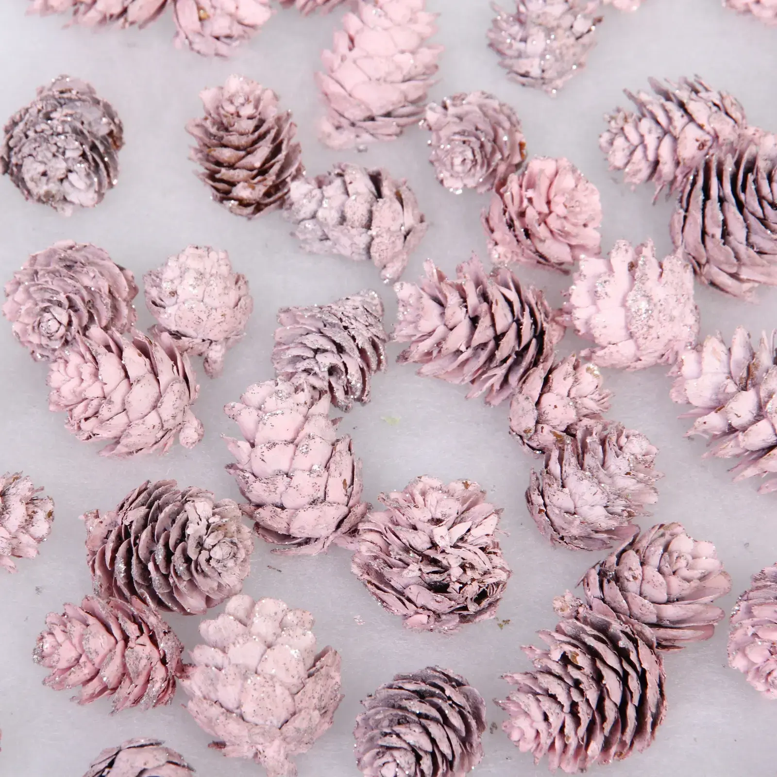 Розовые шишки с мерцающими блестками превратят ваш интерьер в сказочное пространство. Идеальная композиция для новогоднего оформления, свадебного декора или творческих проектов.