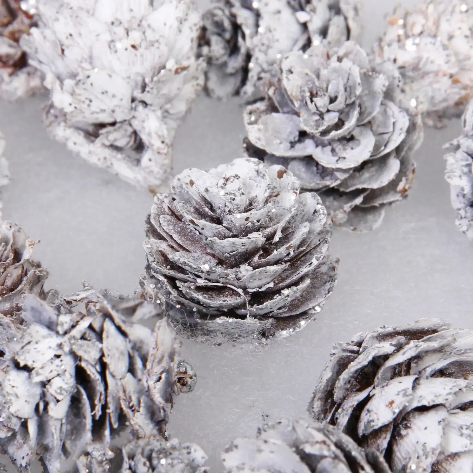 Натуральные деревянные шишки с эффектом инея выглядят естественно и элегантно. Компактный размер (11*11*14 см) позволяет легко разместить их в любом пространстве. Стильное серебристое напыление добавляет нотку зимней сказки.