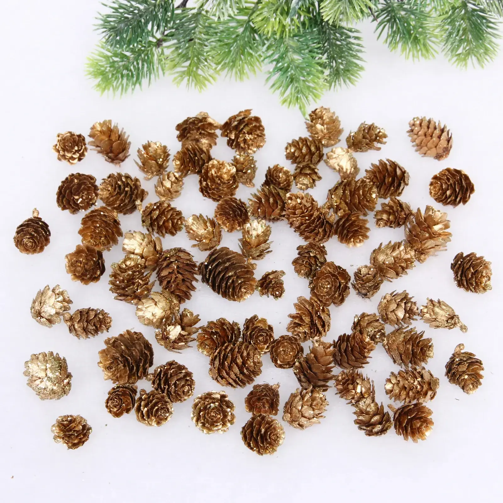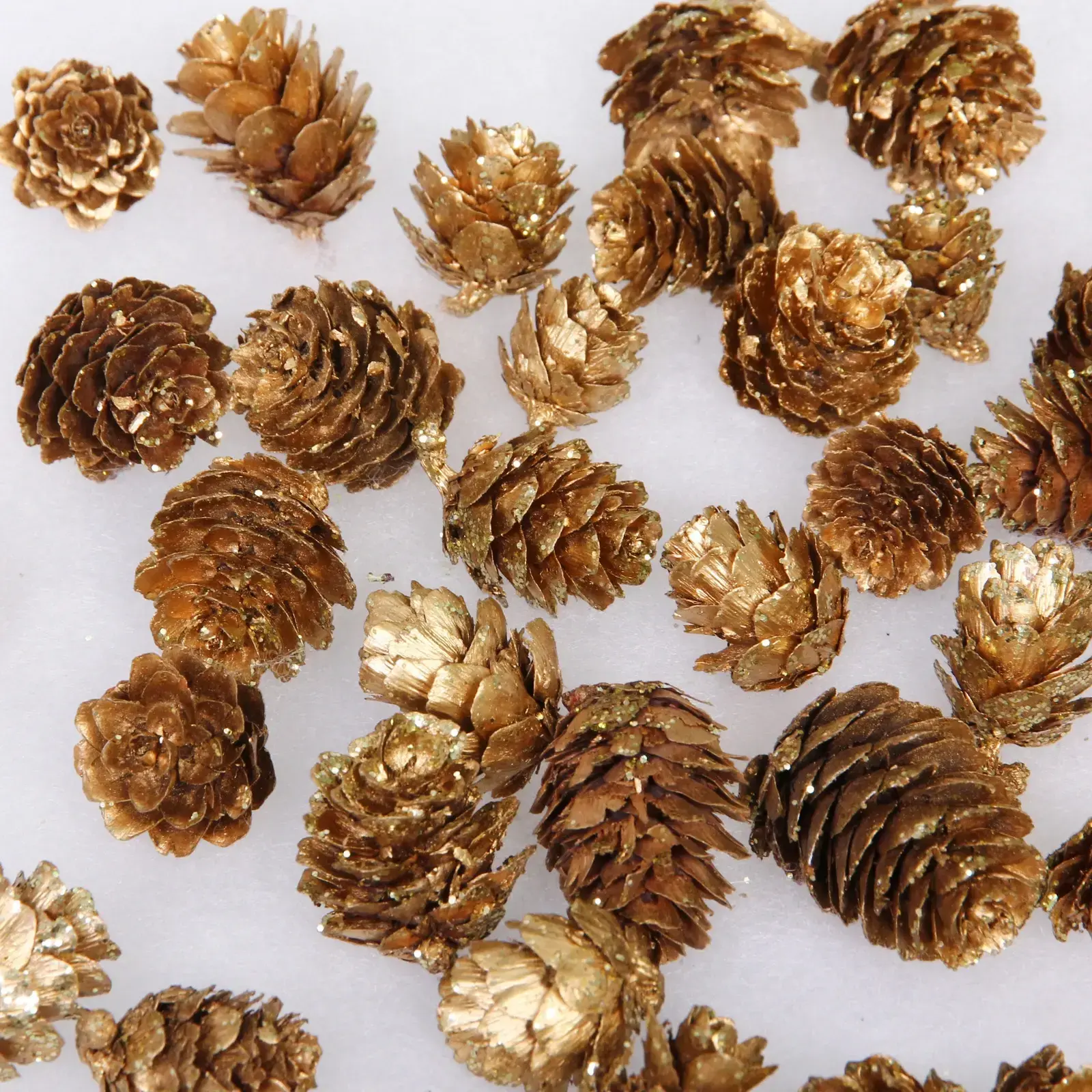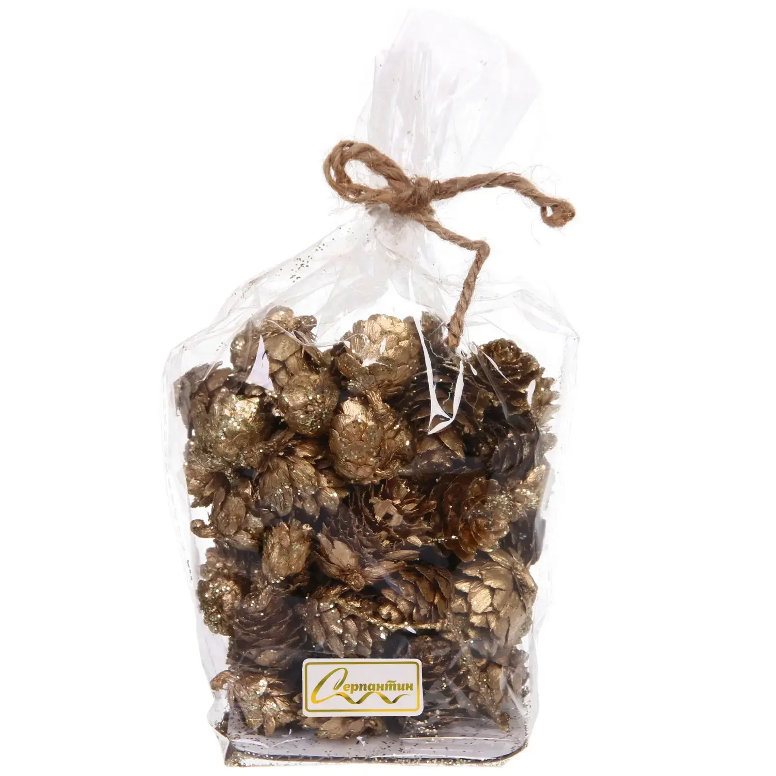Декоративные шишки «Волшебные шишки», золото с блёстками, 150 г, натуральное дерево для интерьера и праздника