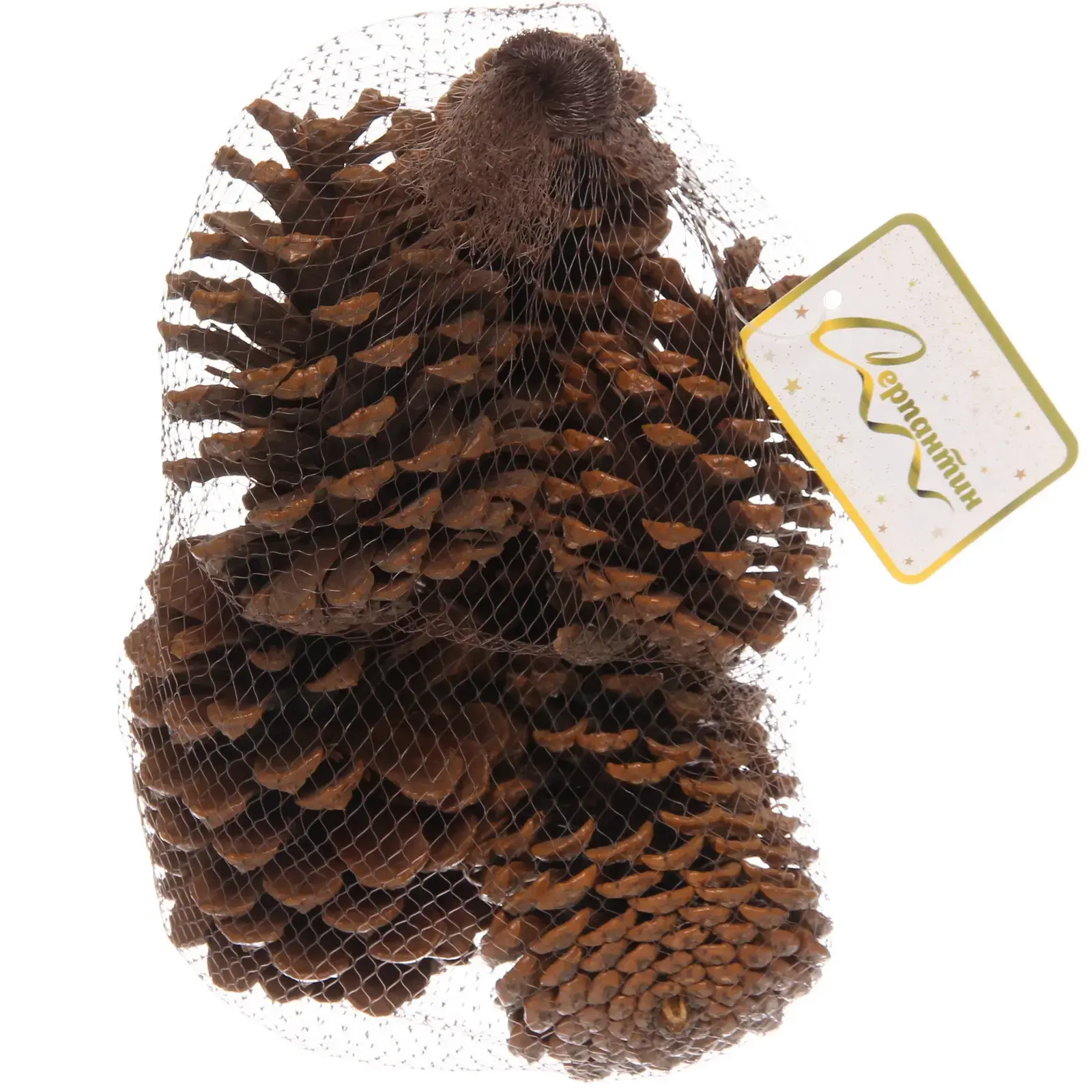 Шишки упакованы в удобную сетку, защищающую содержимое и позволяющую видеть товар перед покупкой.