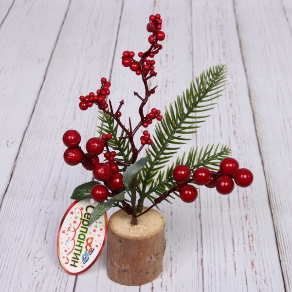 Эта новогодняя композиция станет идеальным украшением вашего дома в зимний период. Яркие красные ягоды и зеленые листья создают неповторимый контраст, который привнесет в ваш интерьер атмосферу уюта и тепла. Используйте её для декорирования праздничного стола или в качестве акцента в любом уголке вашего дома.