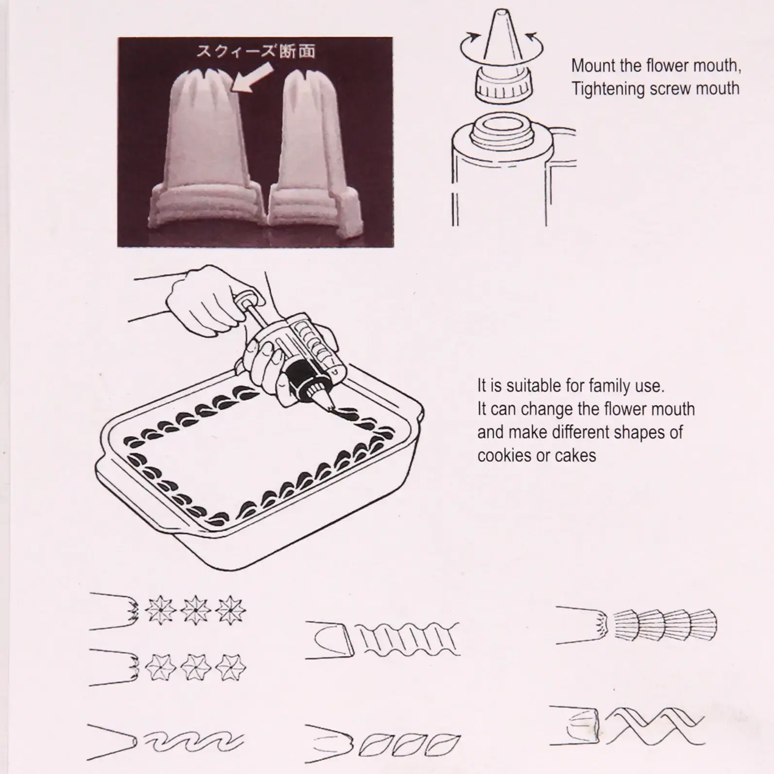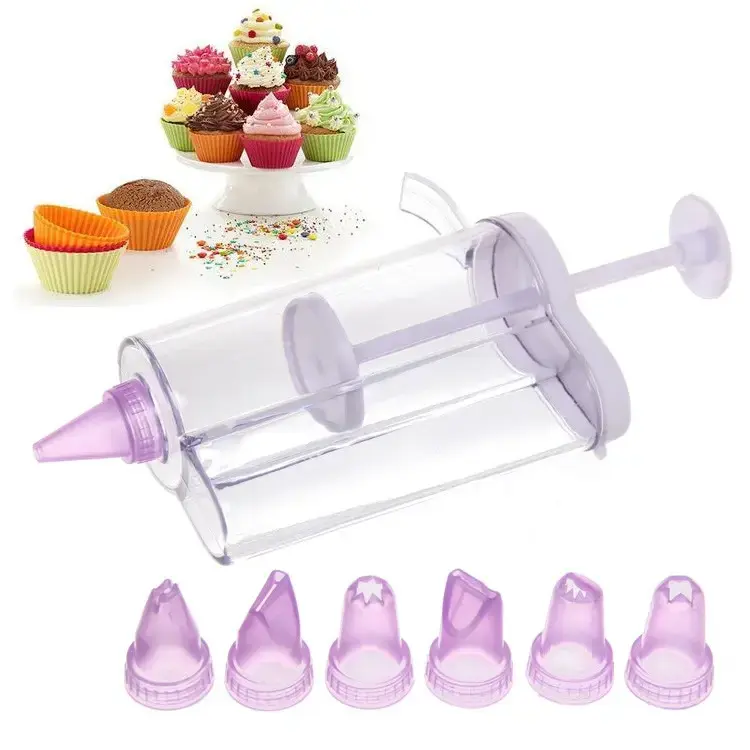 Создавайте профессиональные украшения для десертов легко и быстро! Шприц с 6 сменными насадками позволяет воплощать любые идеи — от изящных цветов на тортах до аккуратного печенья одинаковой формы.