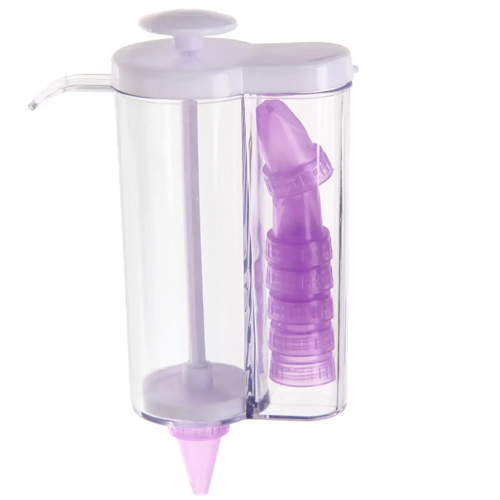 Объем шприца 300 мл оптимален для работы с разными видами масс. Фиолетовый цвет корпуса и насадок добавляет эстетики рабочему процессу. Компактные размеры позволяют хранить набор в стандартном кухонном ящике.