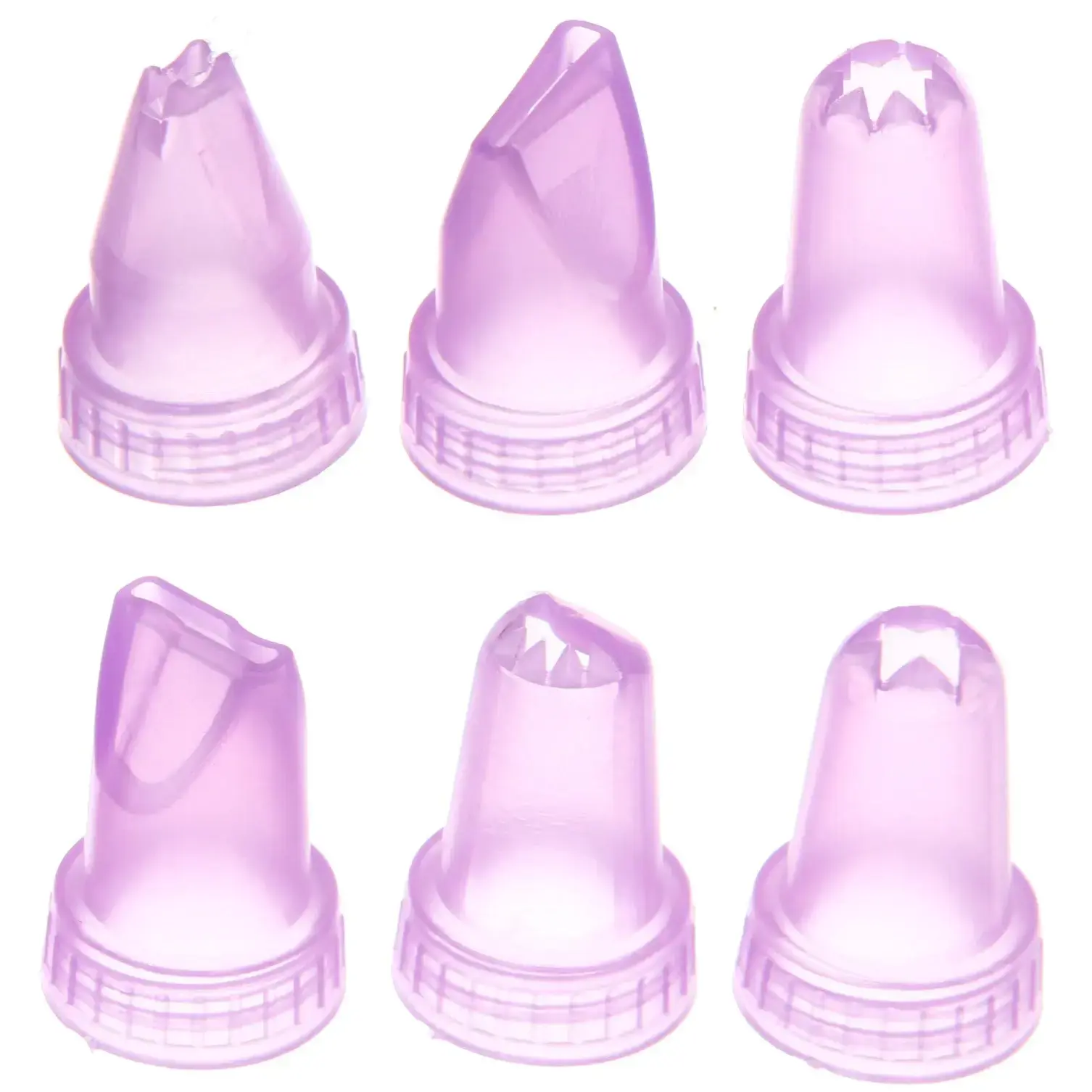 Шестигранный комплект насадок включает все популярные формы: звезда, круг, цветок и три уникальных профиля. Изготовлен из пищевого пластика, безопасного для контакта с кремами и тестом. Подходит для домашнего использования и небольших кондитерских производств.