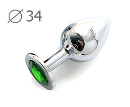 Анальная втулка металлическая коническая, 8,2 см, серебристая с зеленым кристаллом, для стимуляции и украшения