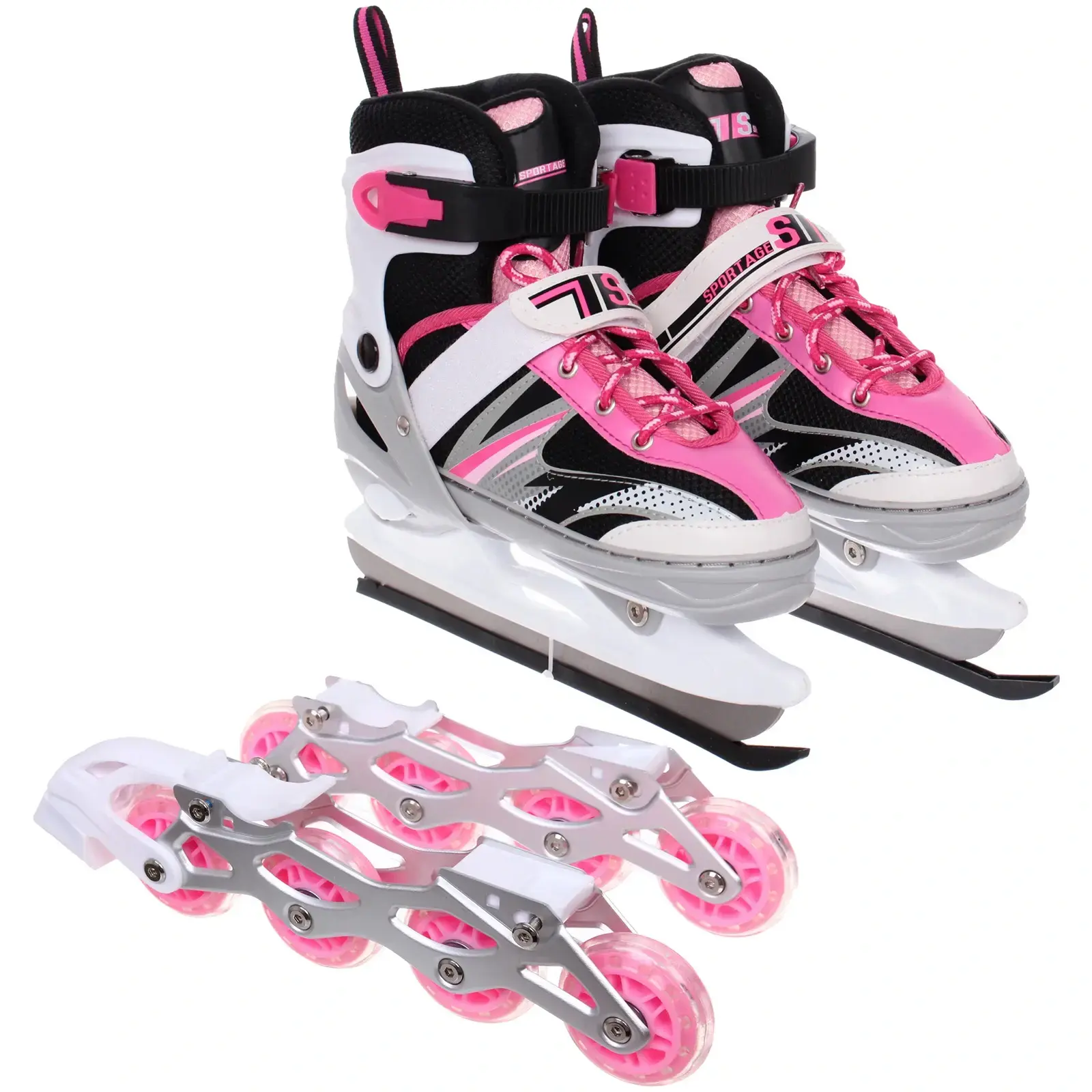 Коньки Sportage FIT105 Dual выделяются своим стильным черно-розовым дизайном, который понравится как детям, так и подросткам. Они изготовлены из прочных материалов, таких как пластик и полиэстер, что гарантирует долговечность и надежность. Металлические лезвия обеспечивают отличное скольжение по льду, а роликовая часть с четырьмя колесами позволяет легко кататься по асфальту. Эти коньки помогут вашему ребенку развивать координацию и уверенность на льду.