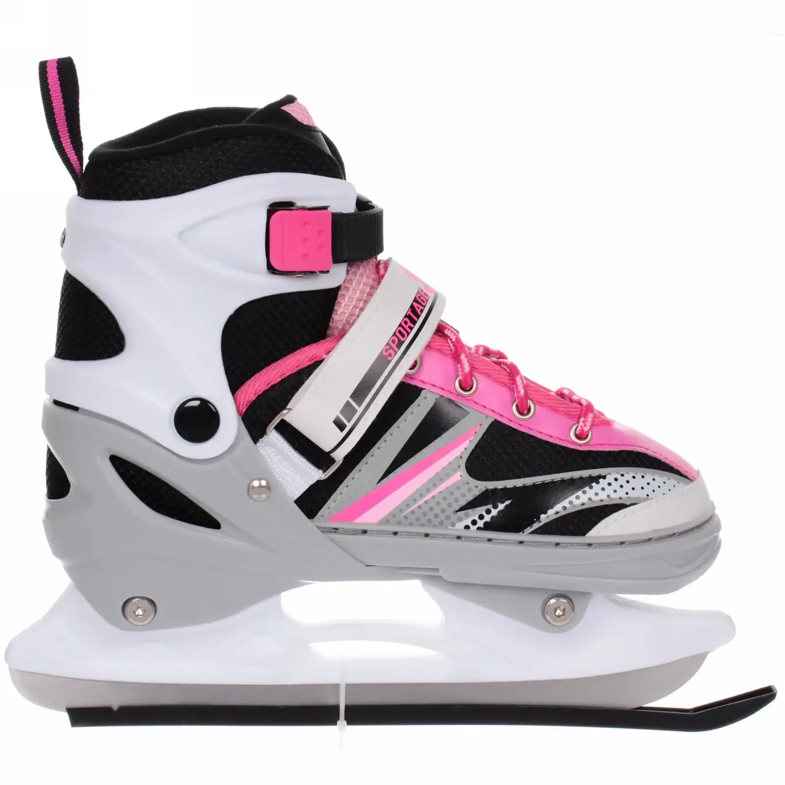Коньки Sportage FIT105 выполнены из качественных материалов: прочного пластика, полиэстера и стали, что гарантирует долговечность и надежность. Лезвия из стали обеспечивают отличное скольжение и маневренность на льду. Яркий дизайн с черными, розовыми и белыми элементами делает эти коньки стильными и привлекательными для молодежной аудитории.