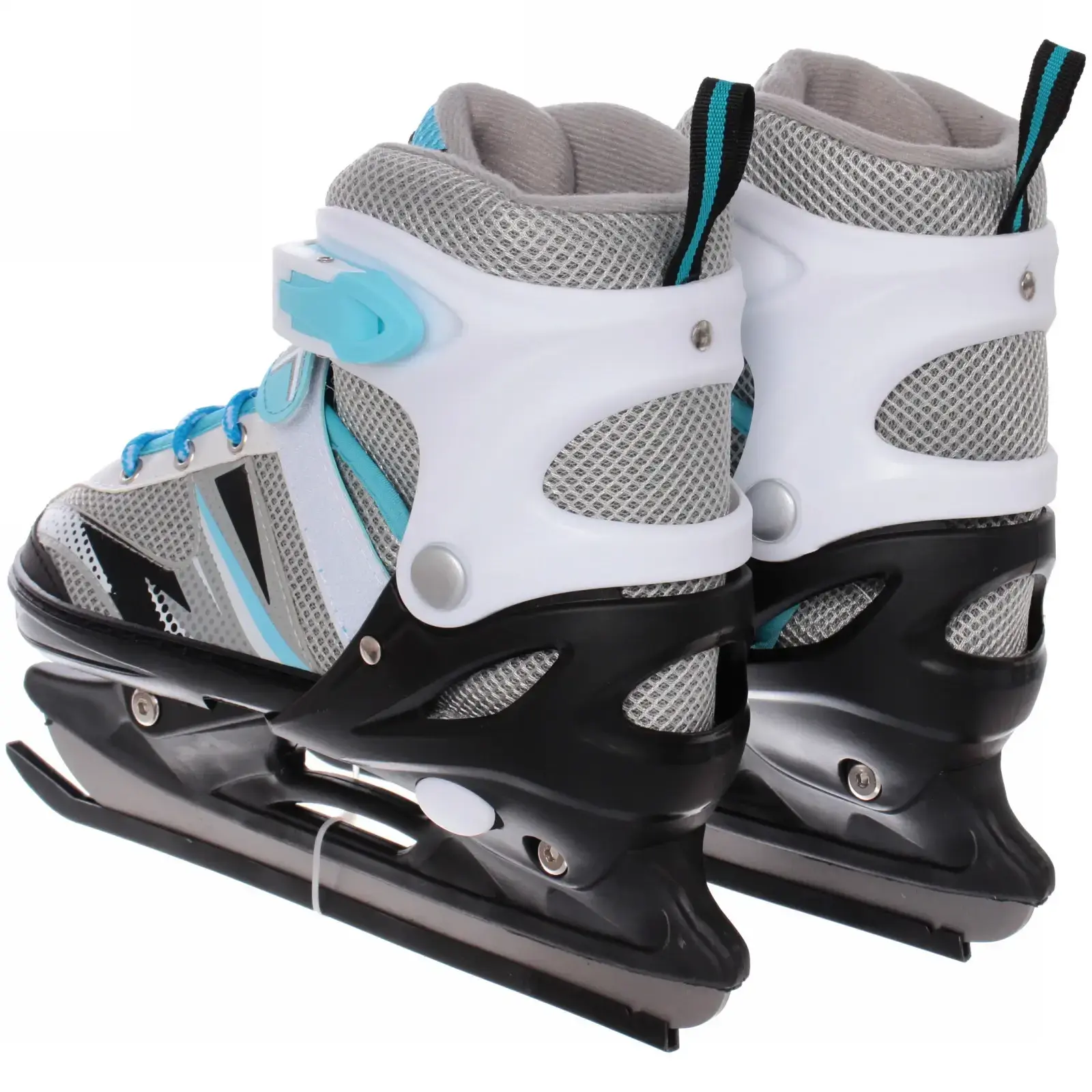 Конструкция сочетает лёгкий пластик рамы (650 г пара) и износостойкую сталь лезвий. Голубая отделка с контрастными швами подчеркнёт ваш стиль на катке. Подходит для начинающих и любителей фигурного катания.