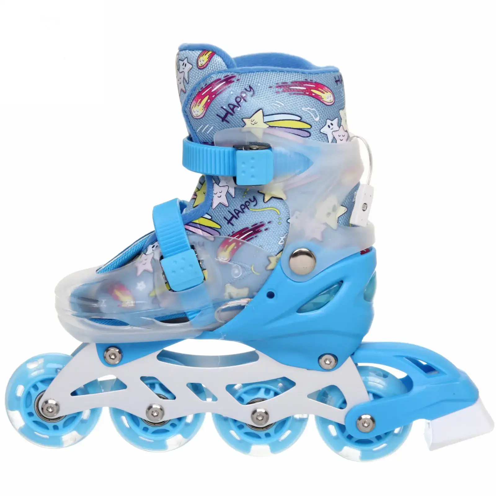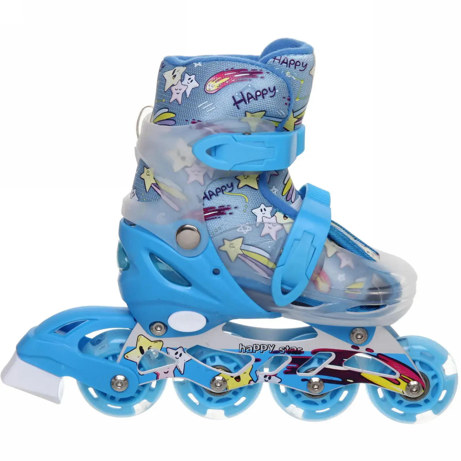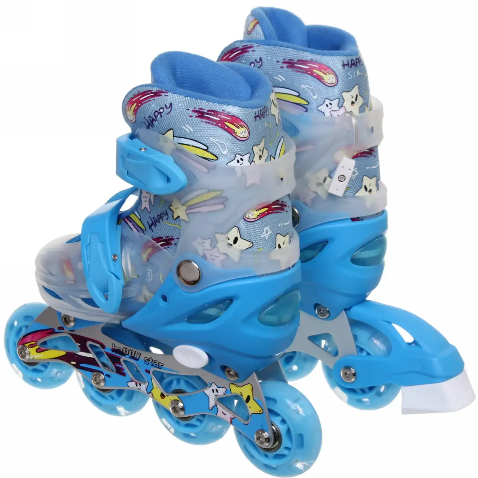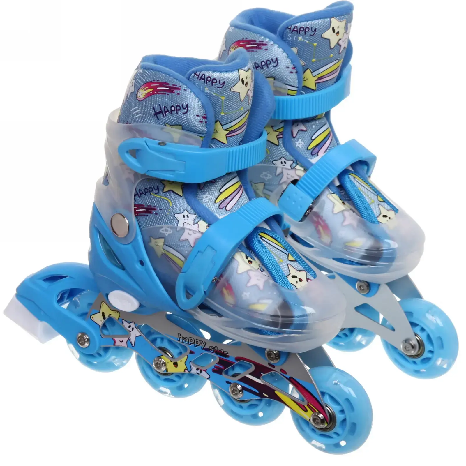 Роликовые коньки раздвижные «Happy Star 668AT» с подсветкой, размер S (29-33), синий, набор: шлем + защита