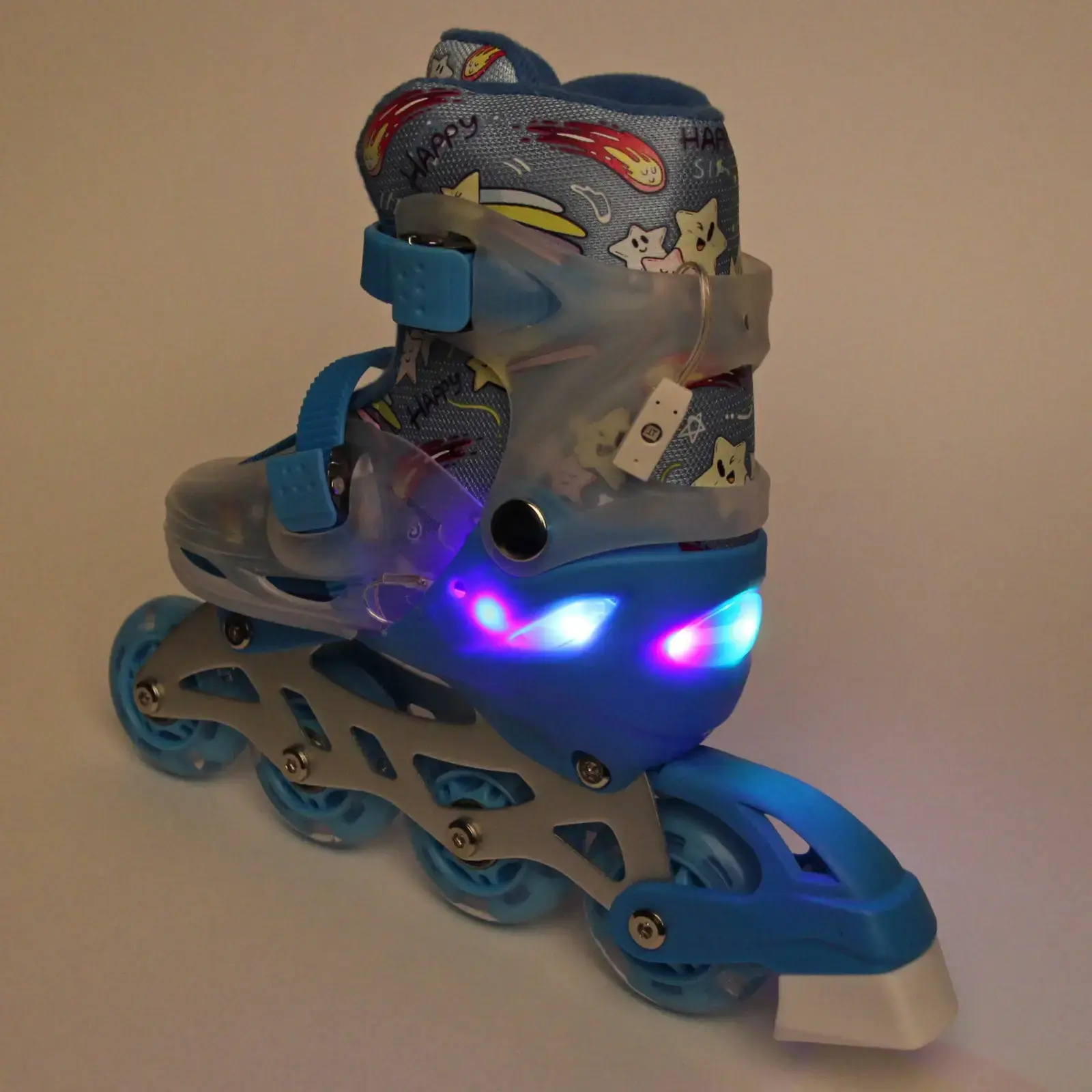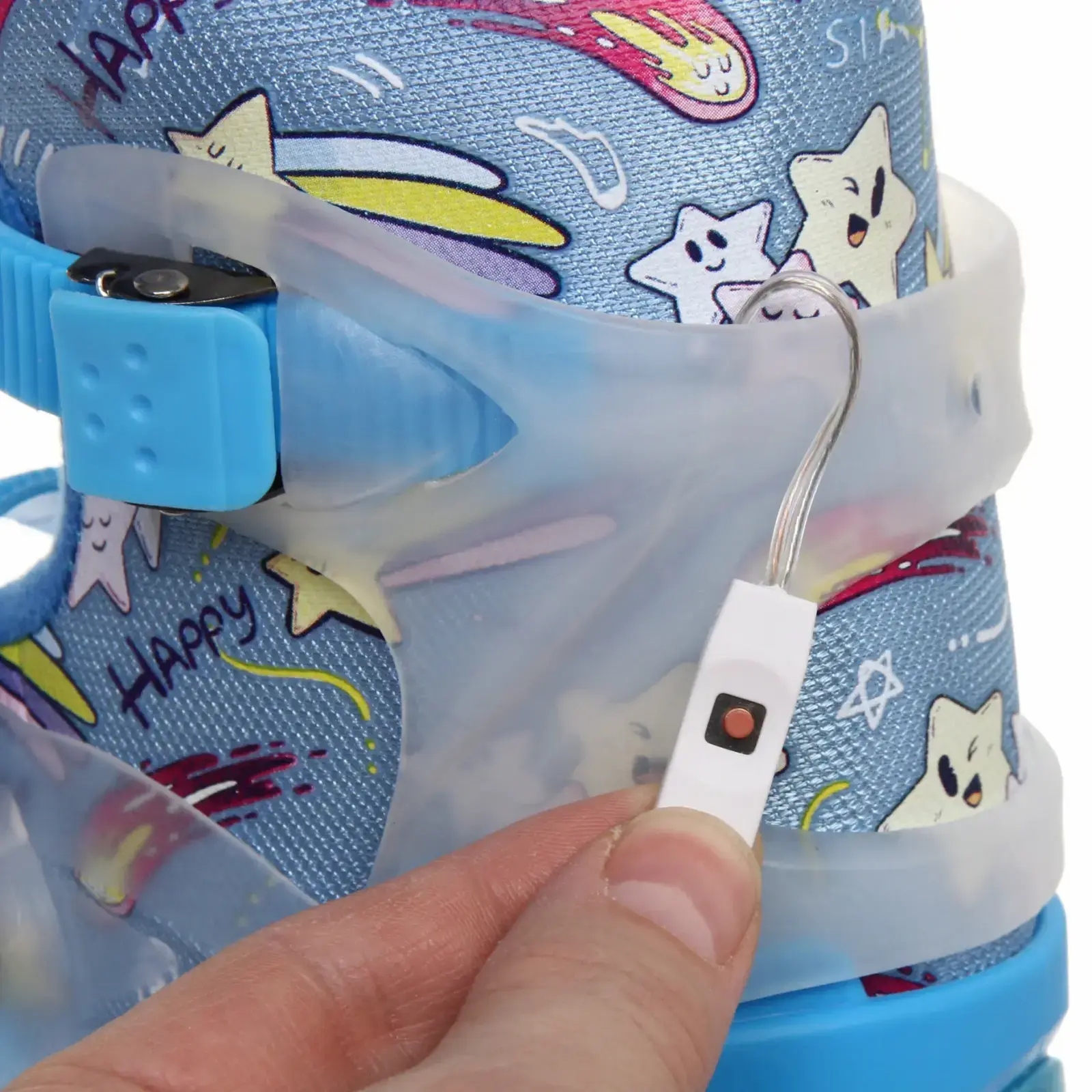 - Роликовые коньки с подсветкой (синий цвет, принт со звёздами)