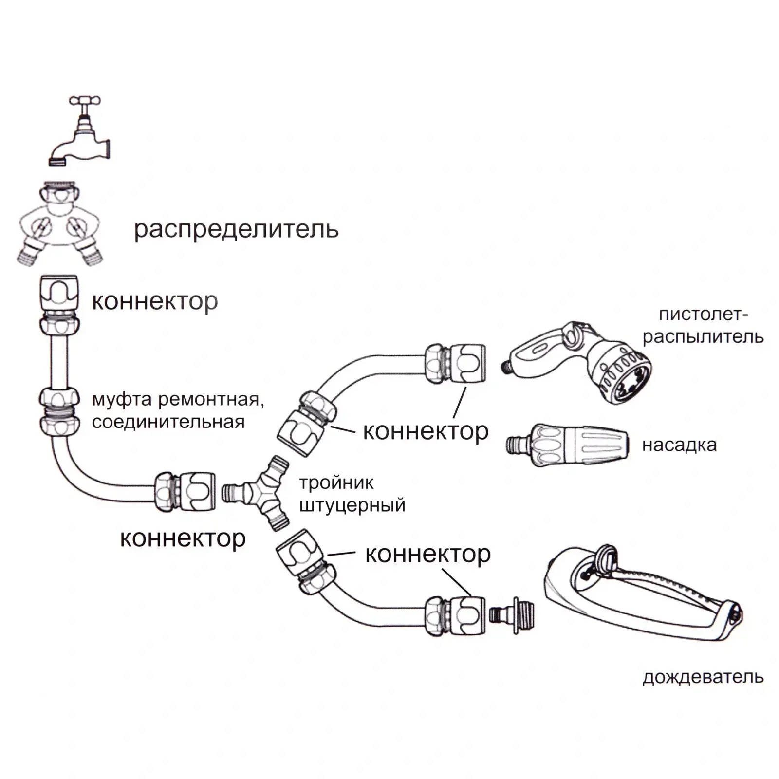 Коннектор крепится к выходному концу шланга, что позволяет легко подсоединять и отсоединять различные инструменты. Благодаря встроенному аквастопу, поток воды автоматически останавливается при отсоединении, что избавляет вас от необходимости постоянно крутить водопроводный кран. Это особенно удобно, когда вы работаете в саду и хотите быстро переключаться между инструментами.