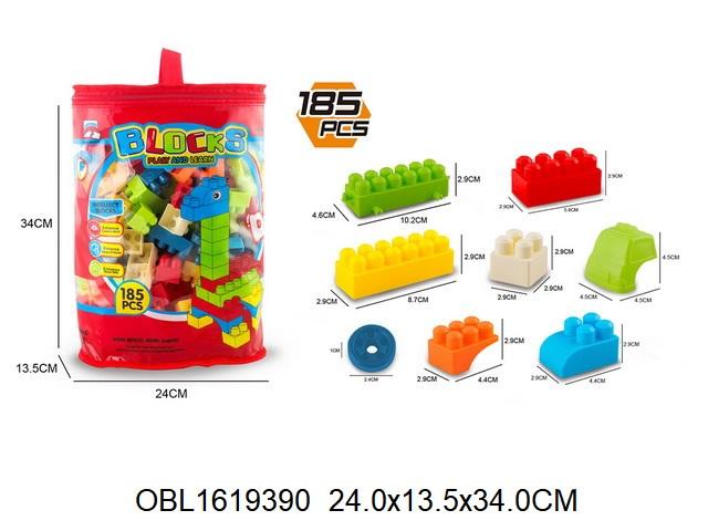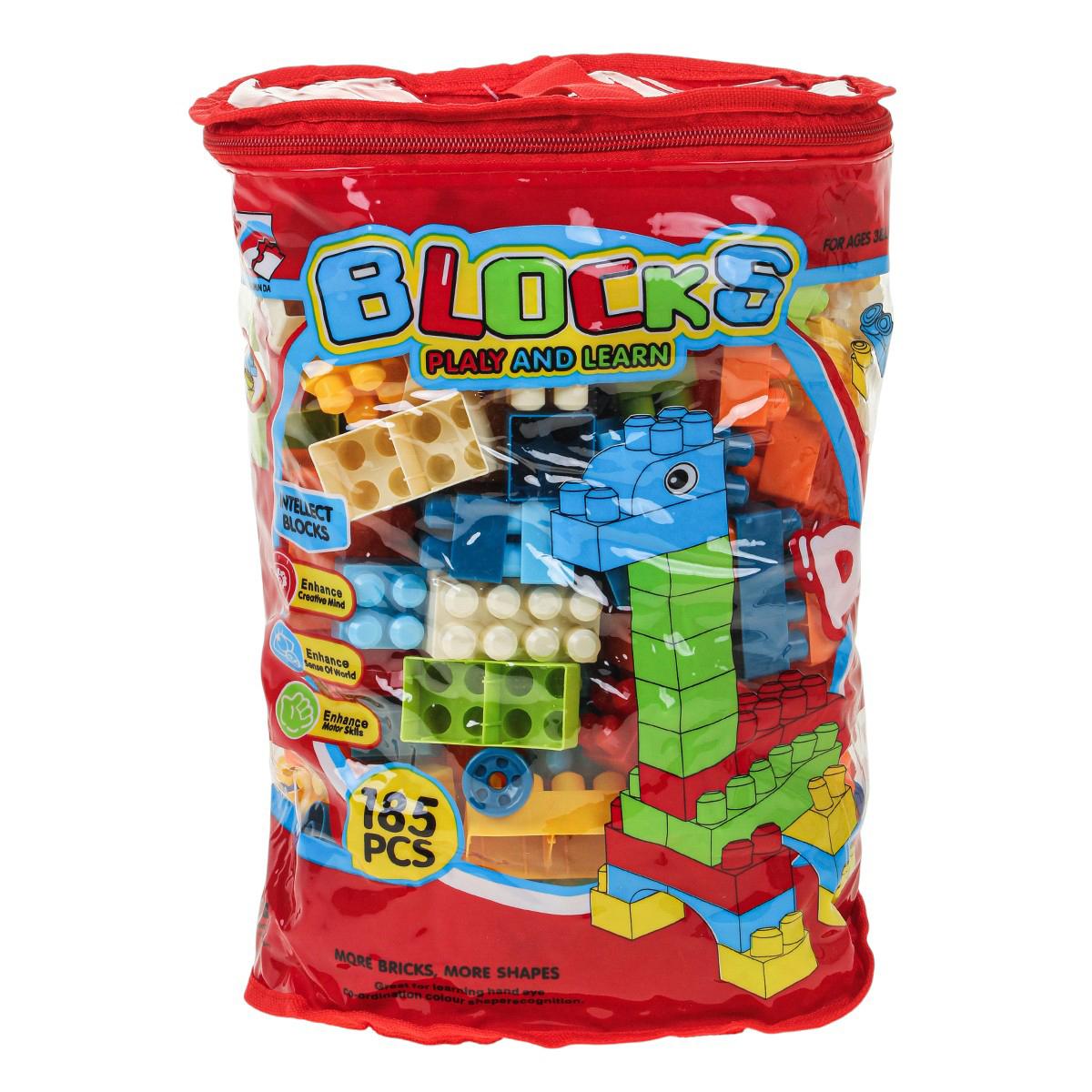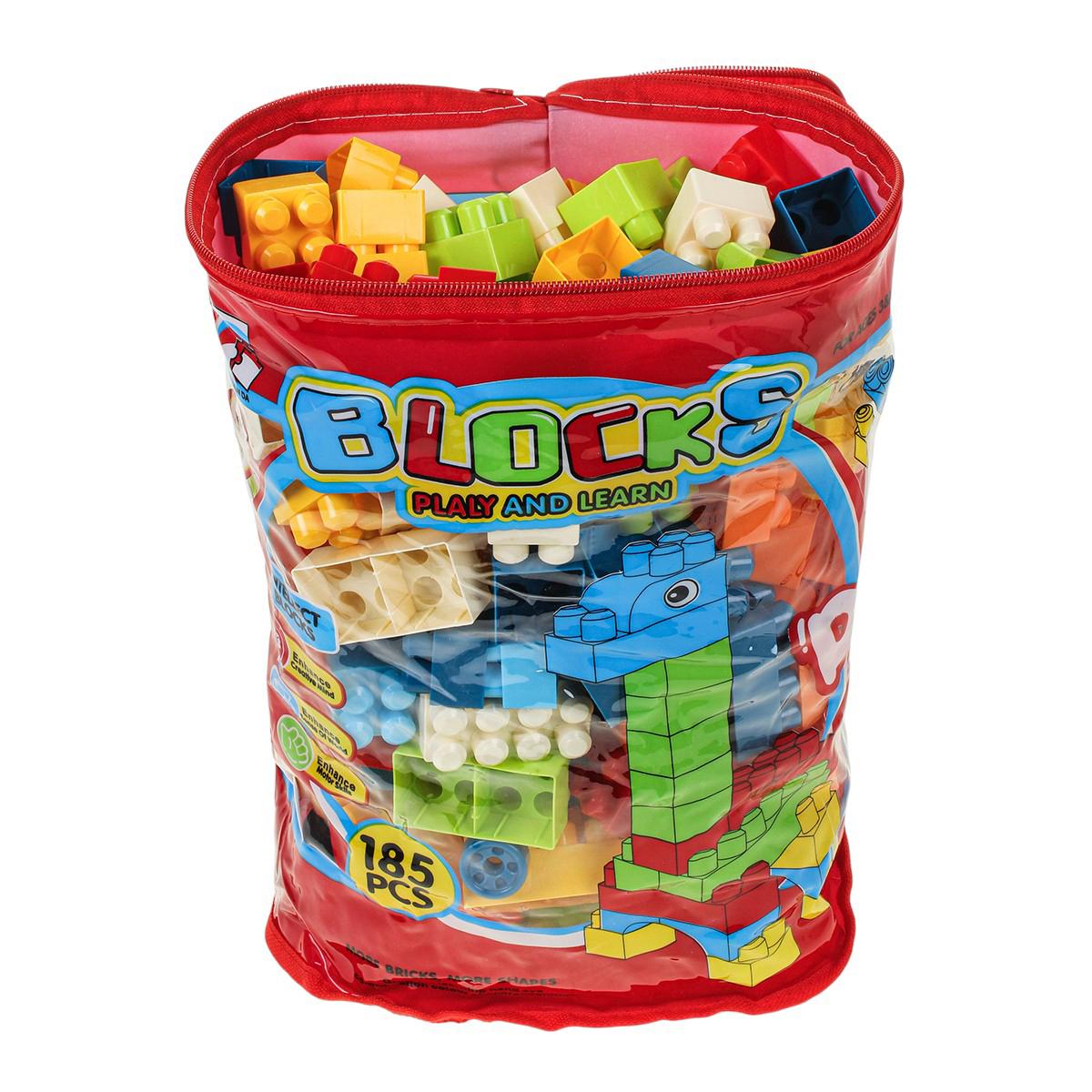 Конструктор блочный 185 деталей, пластик, сумка 24х13.5х34см, для развития моторики и воображения