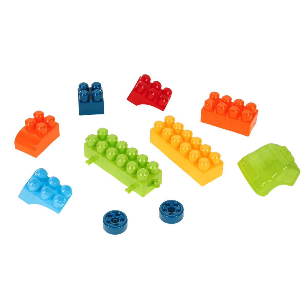 - Разнообразие форм и цветов: В наборе представлены детали различных форм и размеров (включая элементы длиной до 10.2 см и шириной до 8.7 см), а также яркие, насыщенные цвета (зеленый, красный, желтый, белый, оранжевый, голубой, синий), которые стимулируют визуальное восприятие малыша.