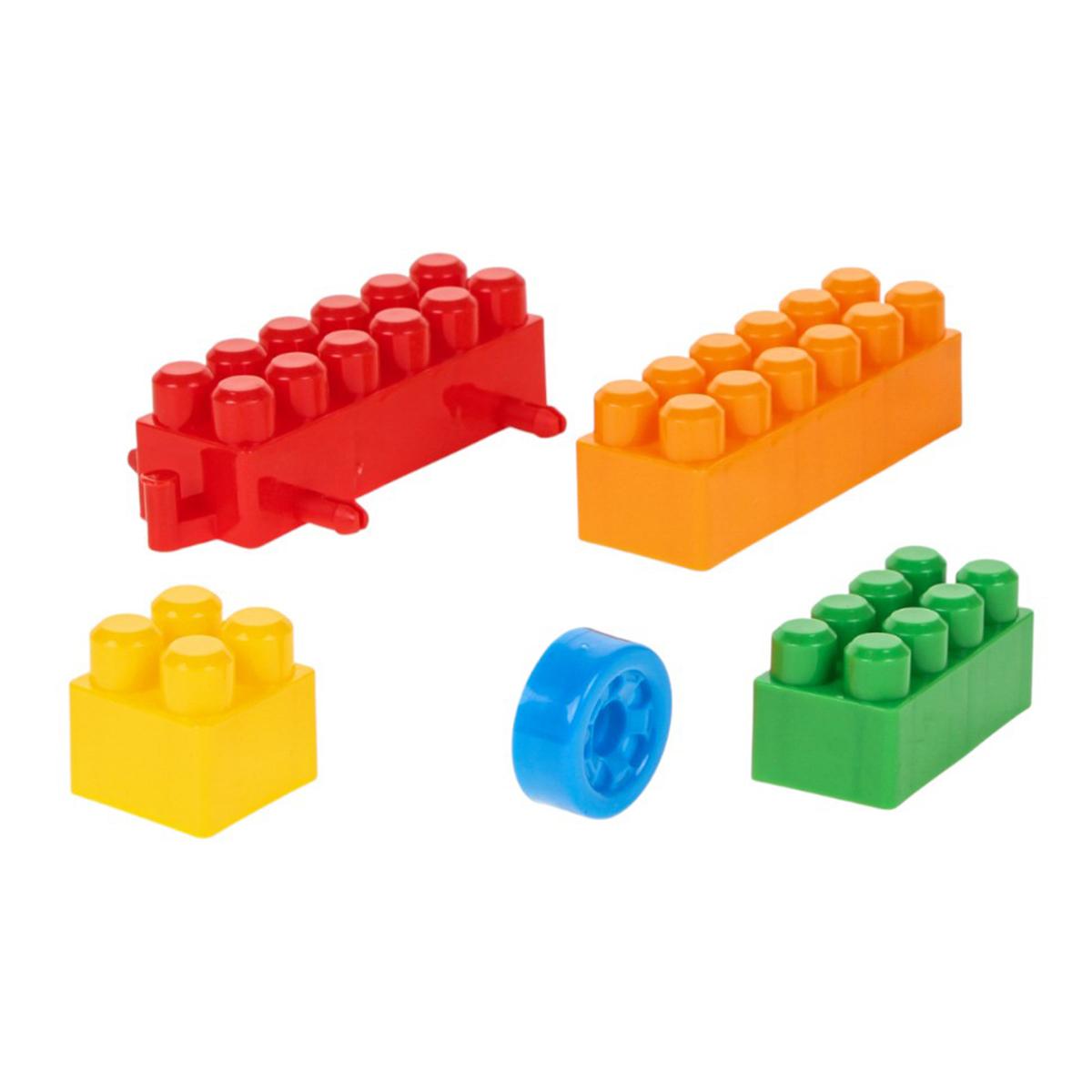В комплекте 60 пластиковых блоков разных цветов (красный, жёлтый, синий, зелёный, оранжевый) и форм. Детали легко соединяются друг с другом, позволяя собирать как плоские, так и объёмные конструкции. На примерах, изображённых на упаковке, можно увидеть, какие интересные модели получаются: многоуровневые машины, башни и другие фигуры. Это отличный способ провести время с пользой, отвлечься от гаджетов и погрузиться в мир реального, тактильного творчества.