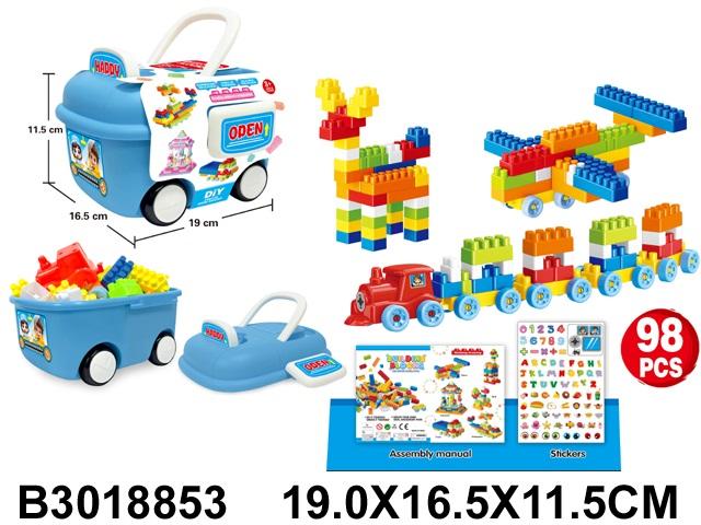 - Удобное хранение и транспортировка: Все 98 деталей конструктора хранятся в прочном пластиковом контейнере на колесах с ручкой. Ребенок сможет легко перевозить свой конструктор по комнате или взять с собой в гости, а после игры быстро собрать все детали обратно, приучаясь к порядку.
