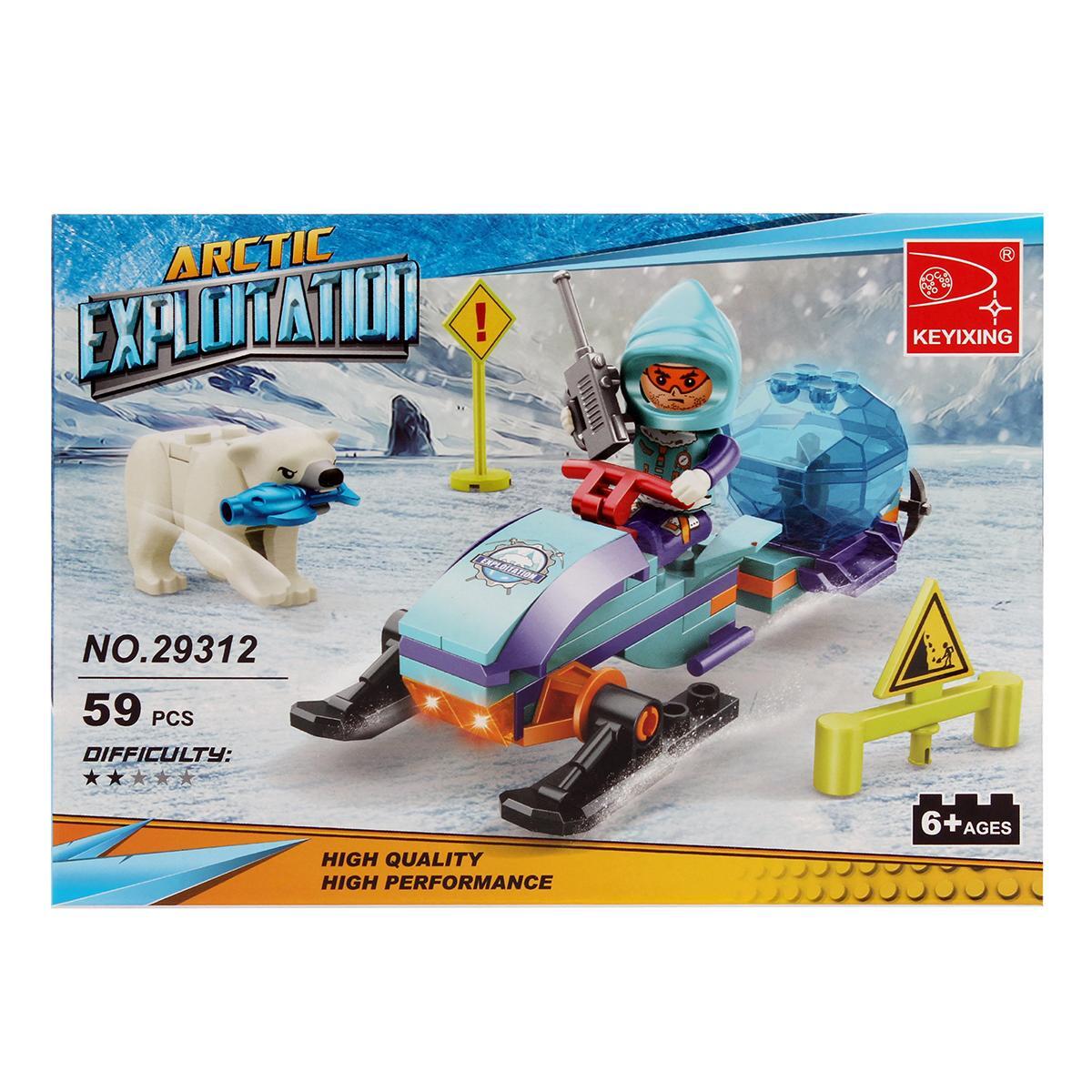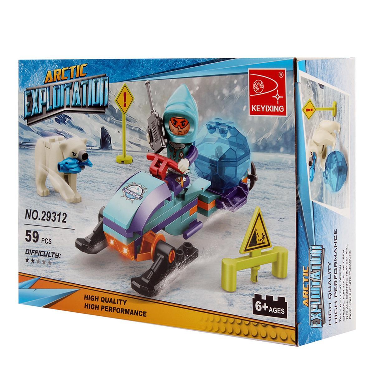 Размер упаковки: 18*13*4,5 см. Материал: пластик. В набор входит 59 деталей, что делает его насыщенным и интересным для длительной игры. Вы можете использовать набор для развития воображения, сюжетных игр и обучения основам конструктора. Это отличный выбор для любознательных детей, любящих активные развлечения в арктическом стиле и приключения.»
