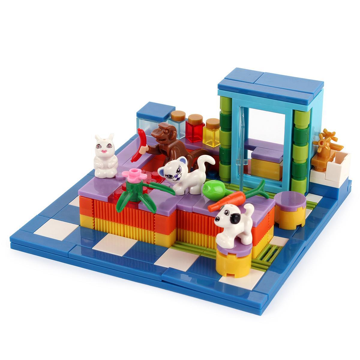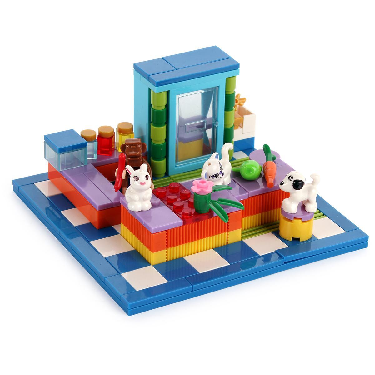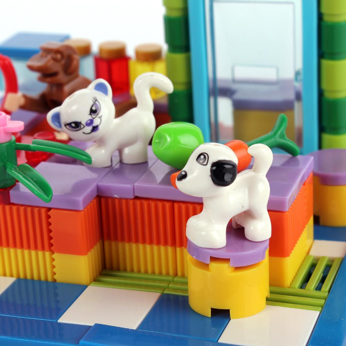 Придумывайте игровые сцены: ухаживайте за питомцами, строите домики, площадки, придумывайте новые приключения. Благодаря деталям разной формы можно не ограничиваться инструкцией, а проявлять креатив и развивать личный сюжет. Набор стимулирует любознательность и способствует совместной игре.