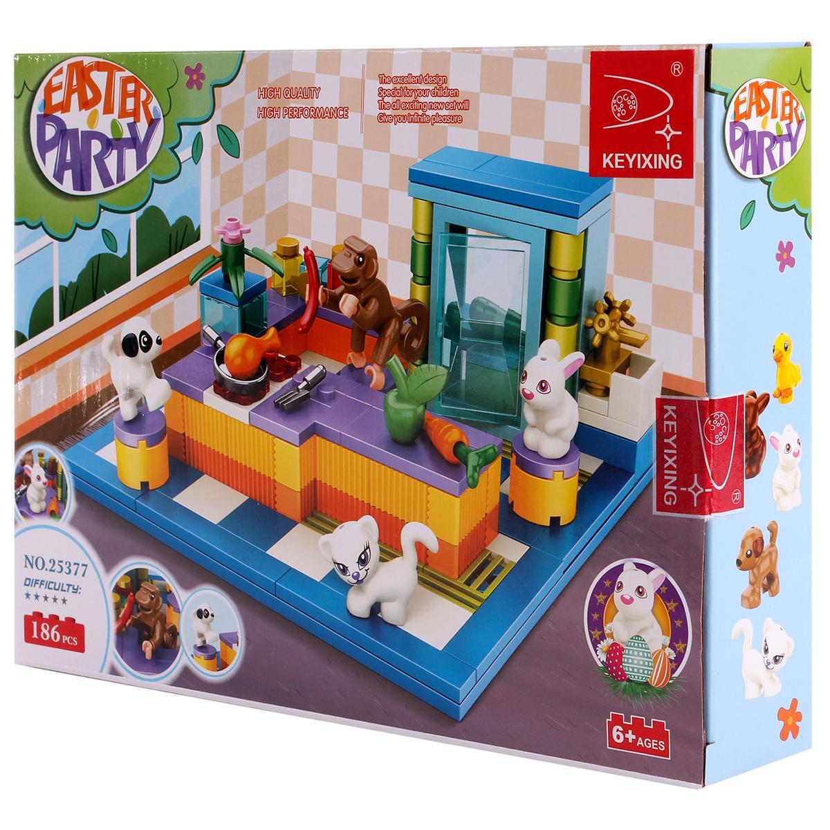 Погрузитесь с ребёнком в настоящий праздник воображения с блочным конструктором на 186 деталей! С помощью разноцветных кубиков и милых фигурок животных малыши создают миниатюрный мир, наполненный игрой, теплом и заботой. Удивительно выразительные зверята — кот, собака, кролик и обезьяна — дарят каждой истории настроение, а яркая палитра деталей вдохновляет на новые свершения. Такой набор — отличная возможность развить мелкую моторику, фантазию и коммуникацию, играя вместе с другом или родителями.