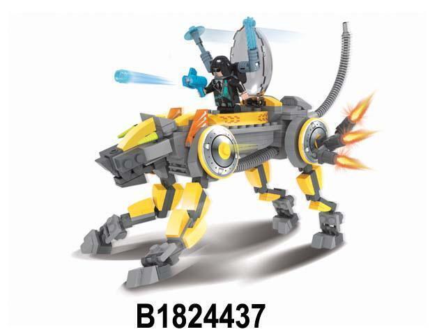Конструктор выполнен из прочного пластика и представлен в серо-черных тонах с яркими акцентами. Модель робота-кошки включает элементы, имитирующие светящиеся детали, что добавляет ей футуристический вид. Упаковка содержит инструкции по сборке и общие указания по использованию, что делает процесс сборки простым и понятным.