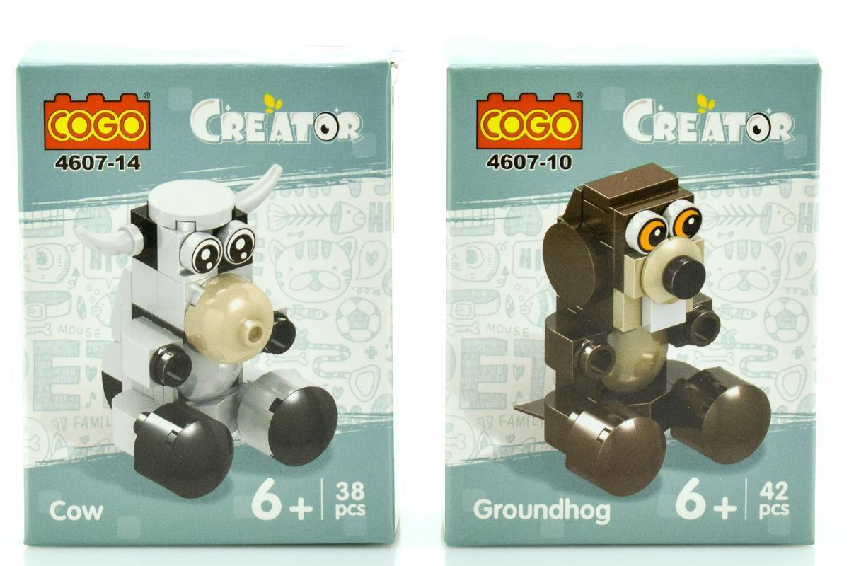 Соберите забавных зверюшек: корову (38 деталей) или сурка (42 детали). Создавайте новые комбинации, соединяя детали из разных наборов.