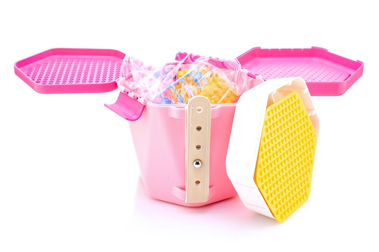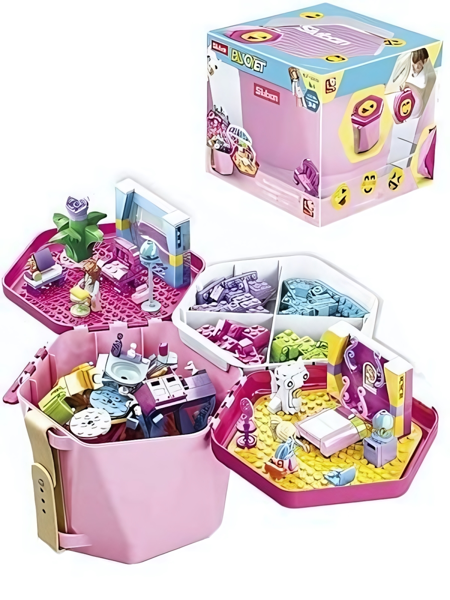 Конструктор представлен в ярком розовом ведре с элементами желтого и голубого, что делает его привлекательным для детей. Удобная форма ведра и наличие ручки позволяют легко переносить набор. Внутри ведра находятся детали, которые разделены на секции для удобного хранения. С помощью этого конструктора ваш ребенок сможет не только играть, но и учиться, создавая свои собственные миры!