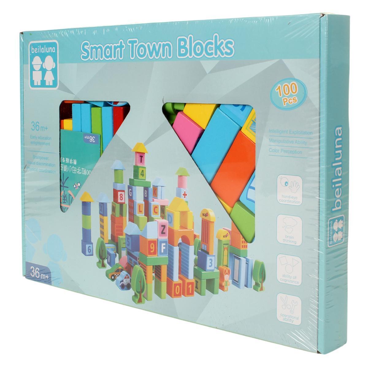 Конструктор деревянный «Smart Town Blocks», 100 элементов, разноцветные кубики, размер 37х26х3 см, от 3 лет
