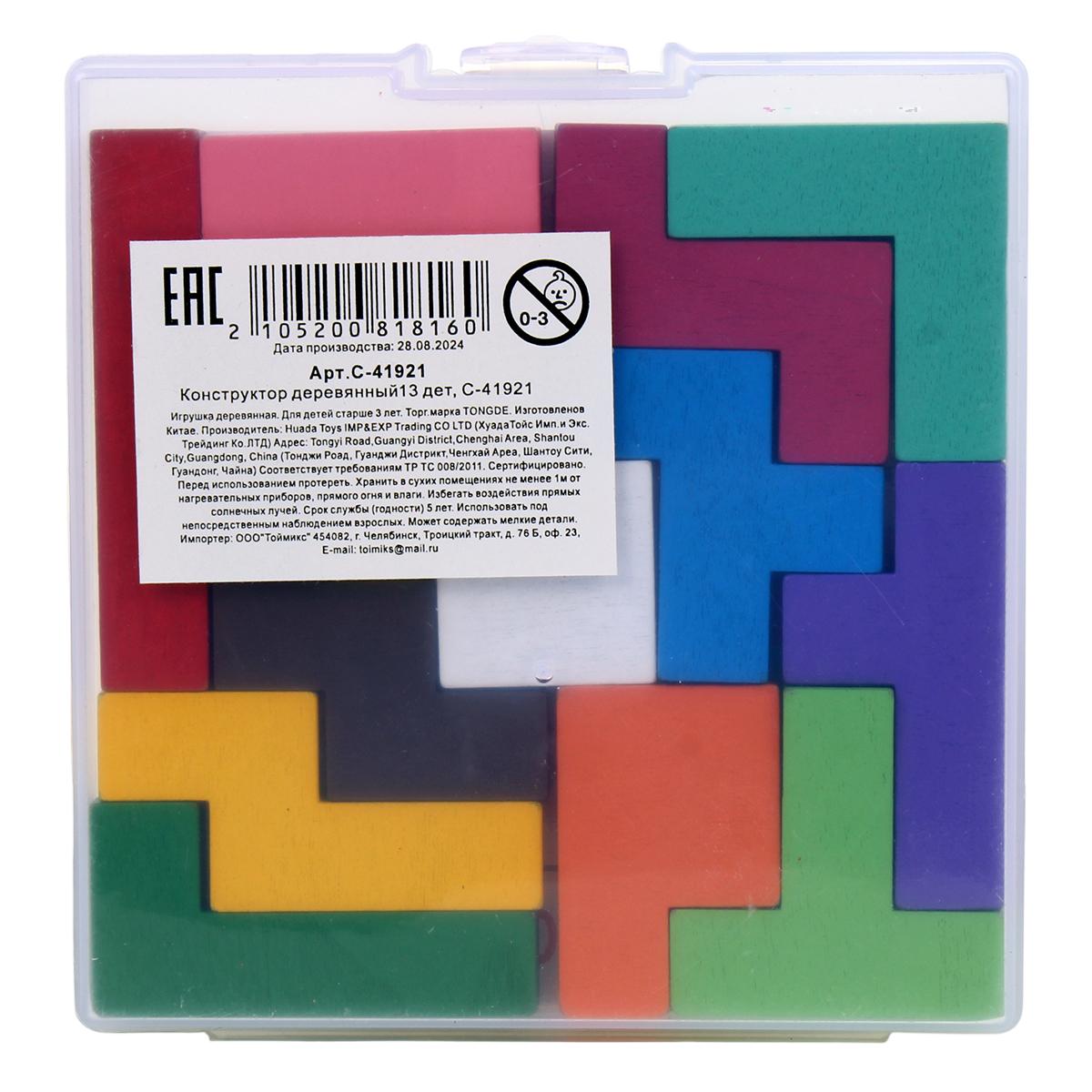 Конструктор деревянный "C-41921", 13 дет, 11*11см, разноцветный, для детей от 1 года