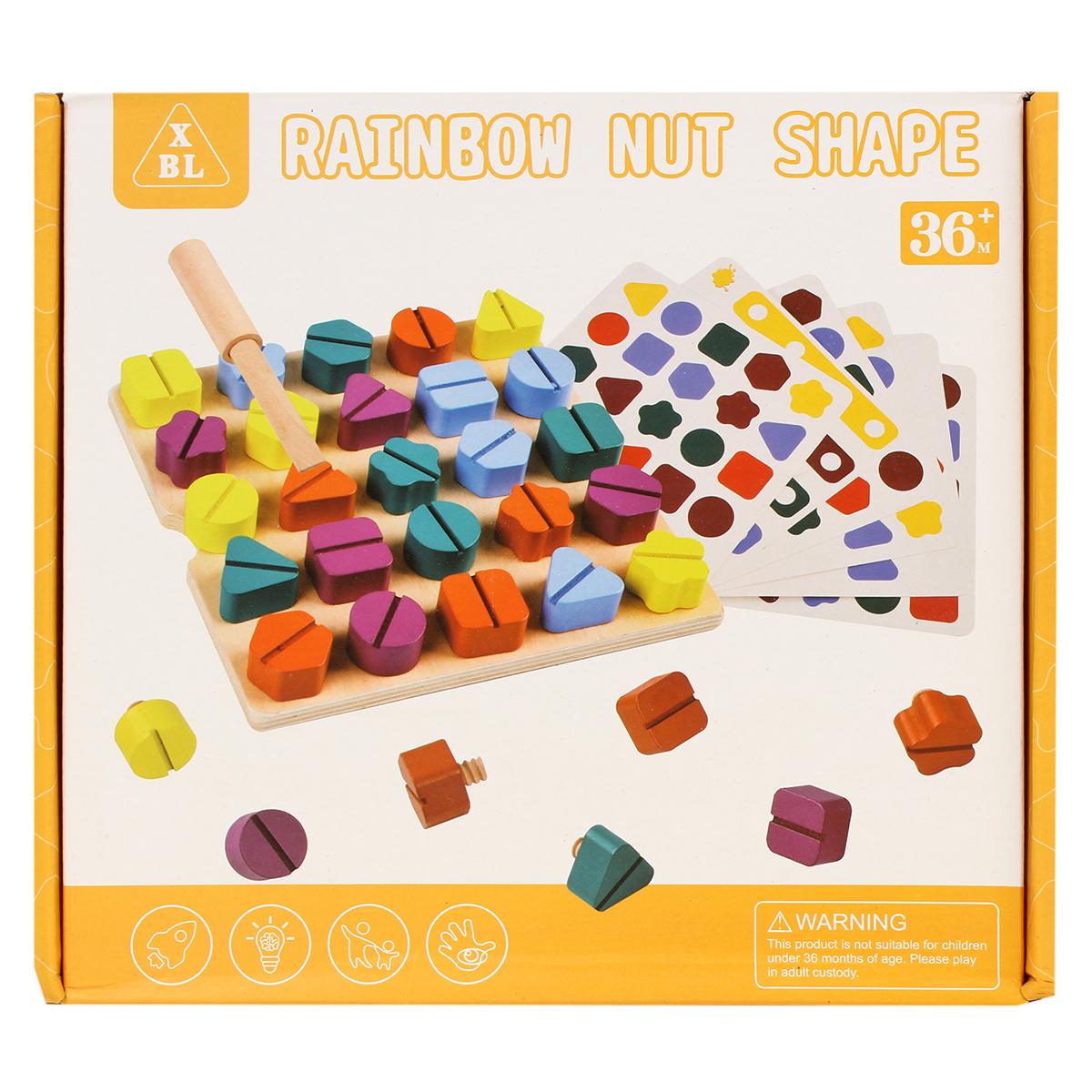 Конструктор деревянный 'Rainbow Nut Shape', 27 дет, размер 23*21*5 см