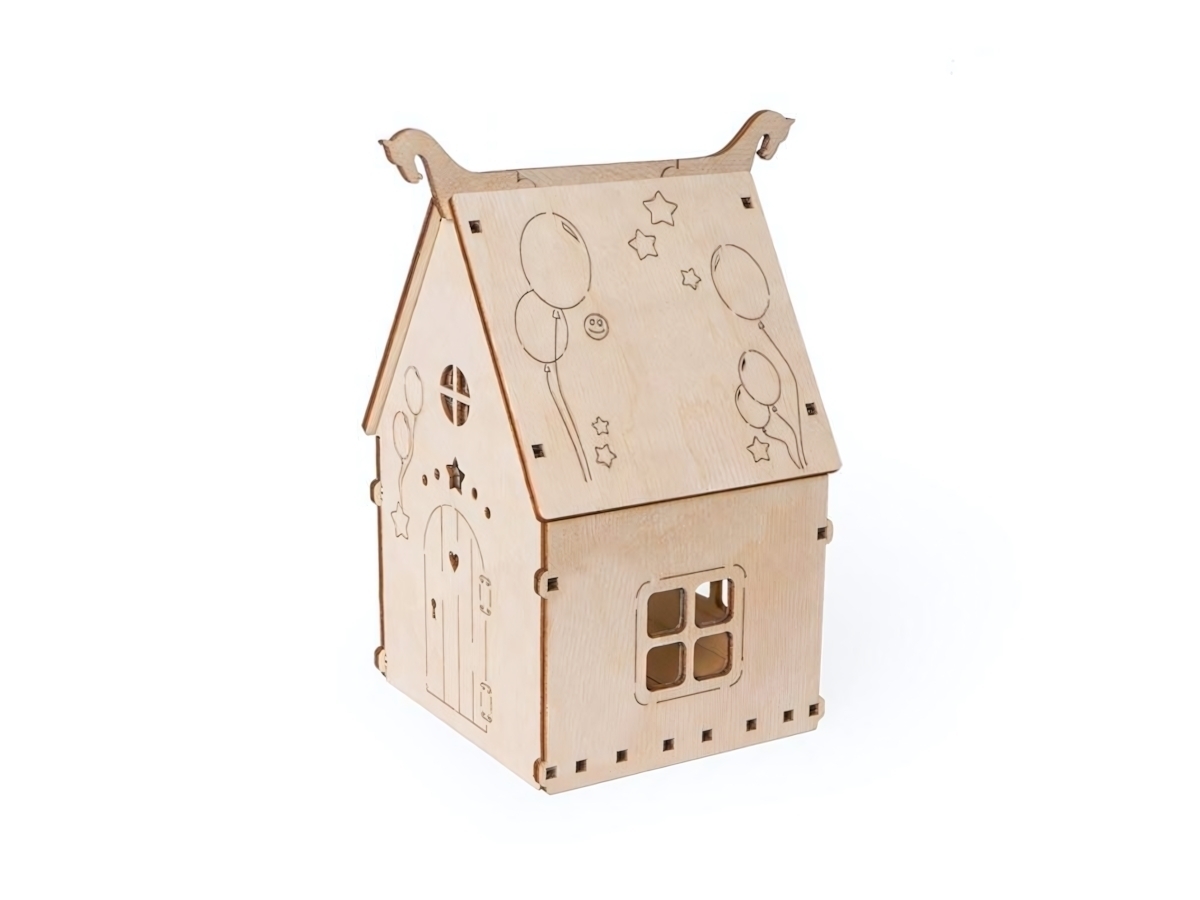 Натуральная текстура дерева и скруглённые углы обеспечивают безопасность игры. Готовый домик можно использовать как кашпо для суккулентов или органайзер для чайных пакетиков — достаточно разместить их в специальном оконном проёме.