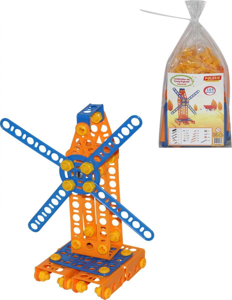 Конструктор "Изобретатель" мельница, 105 эл., пластик, цвет оранжевый/синий