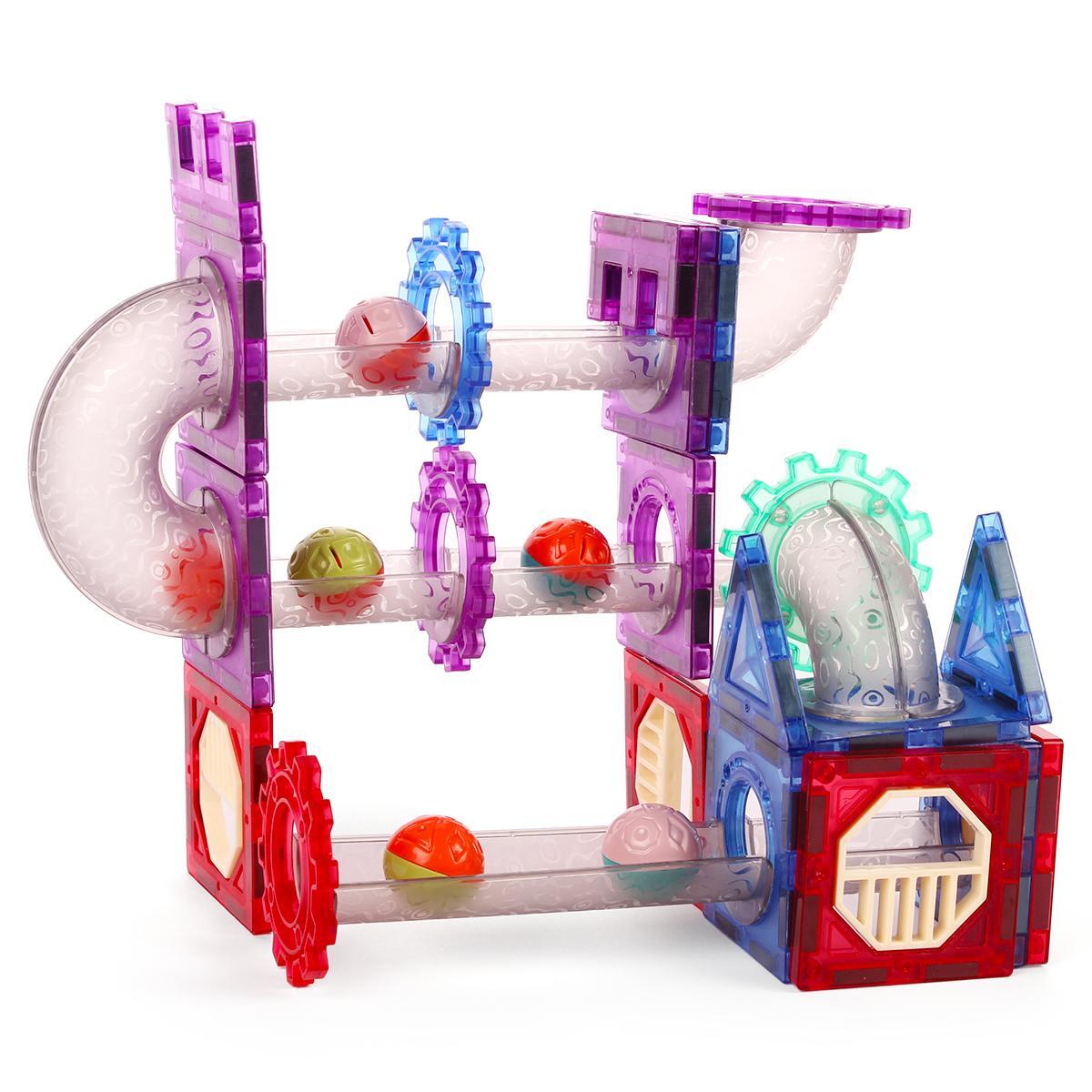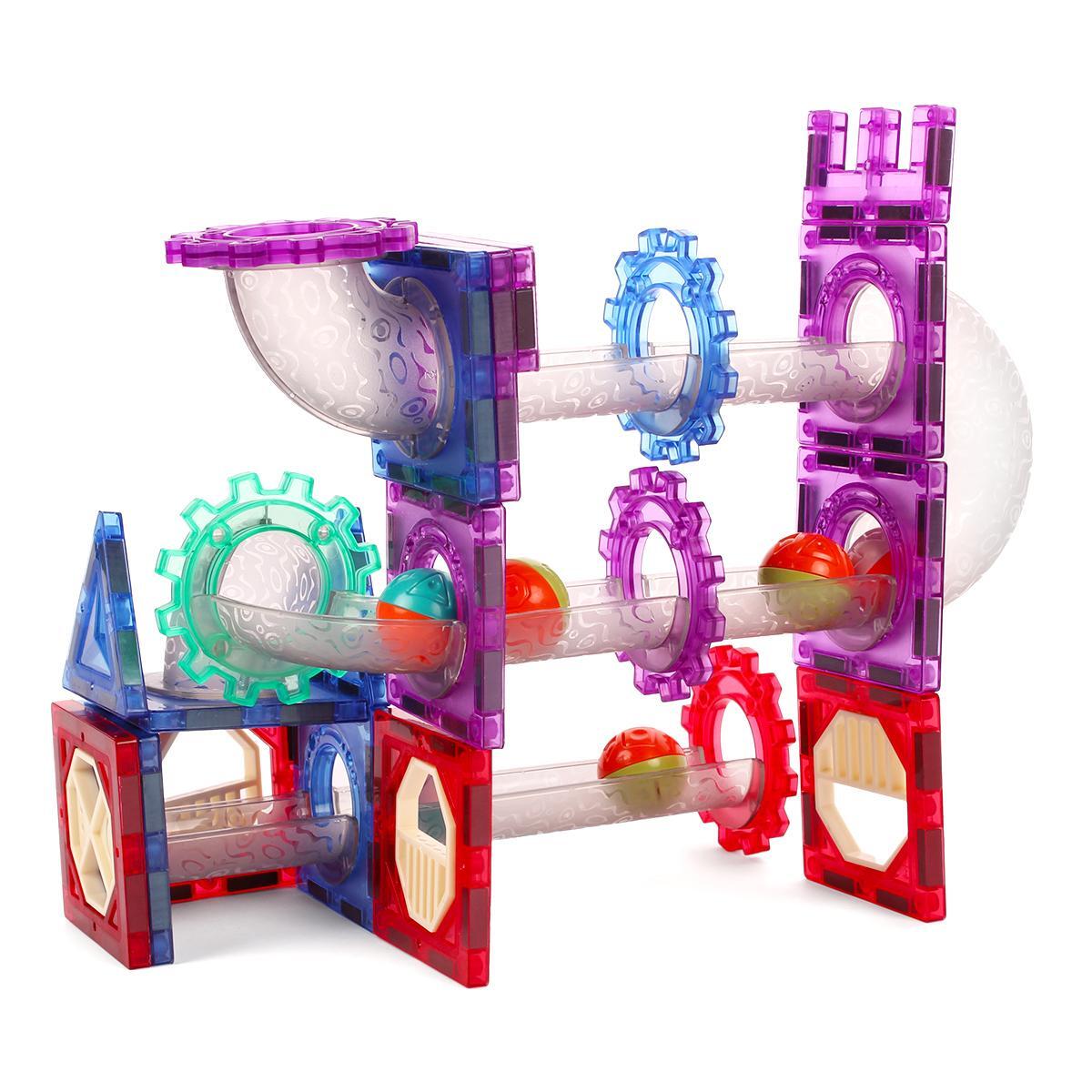Магнитный конструктор для развития логики, 61 элемент: светящиеся шарики, пластиковые трубы, шестеренки