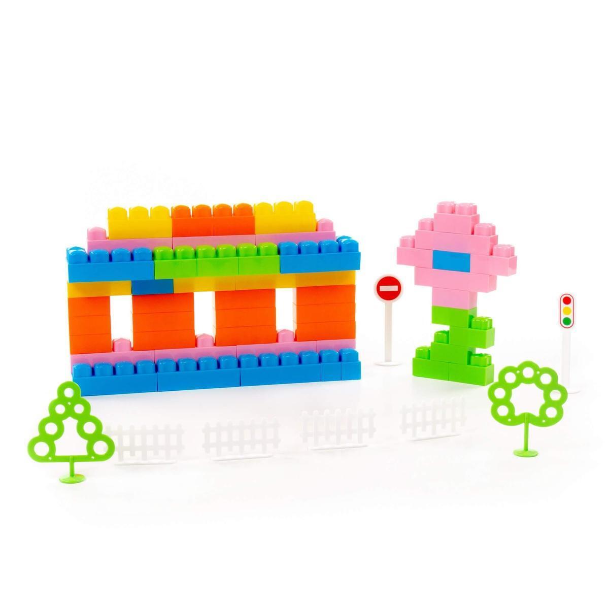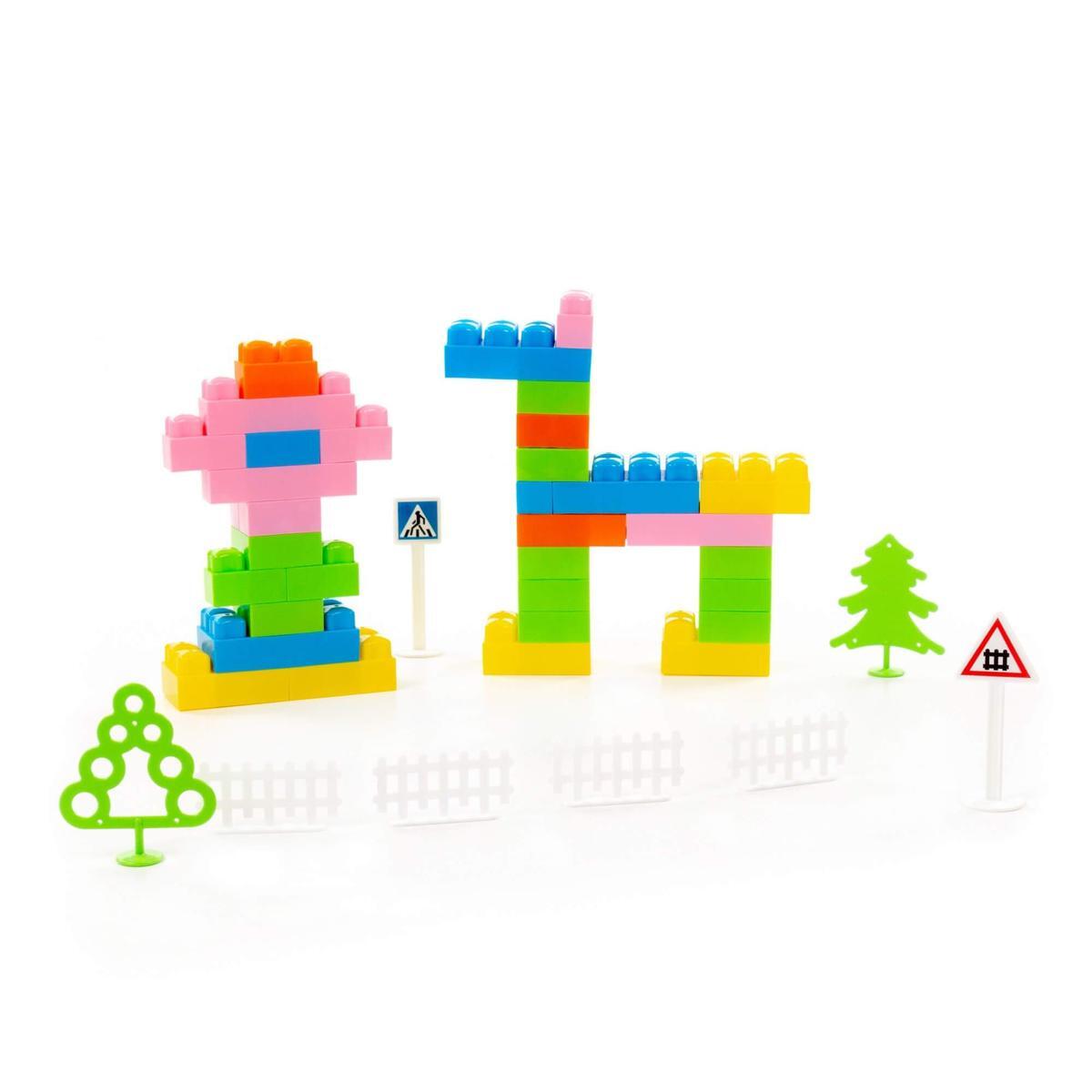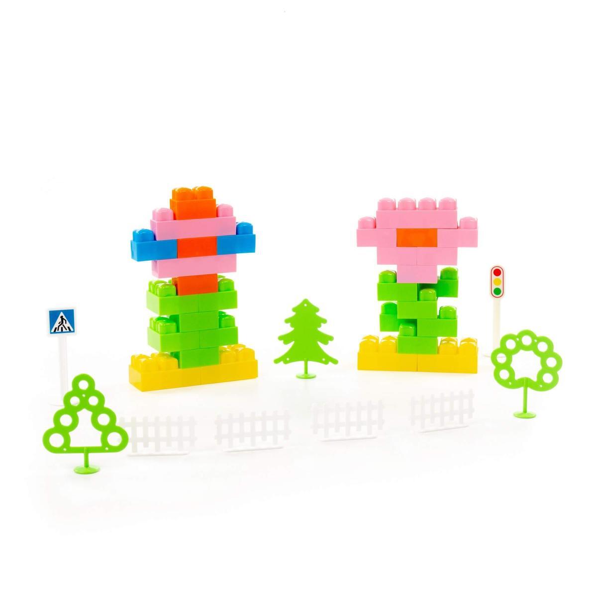 Конструктор подходит для детей от 3 лет и старше. Он включает в себя блоки различных форм и цветов, а также элементы, представляющие деревья, машинки и дорожные знаки. Все детали легко соединяются между собой, что позволяет ребенку самостоятельно создавать свои уникальные постройки и игровые сюжеты.