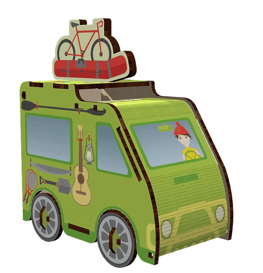 Конструктор состоит из элементов, изображающей миниатюрную туристическую машинку. Он подходит для активных детей, любящих сюжетные игры и творчество. Малыши смогут самостоятельно или вместе с родителями собирать модель, что делает игру не только увлекательной, но и полезной.