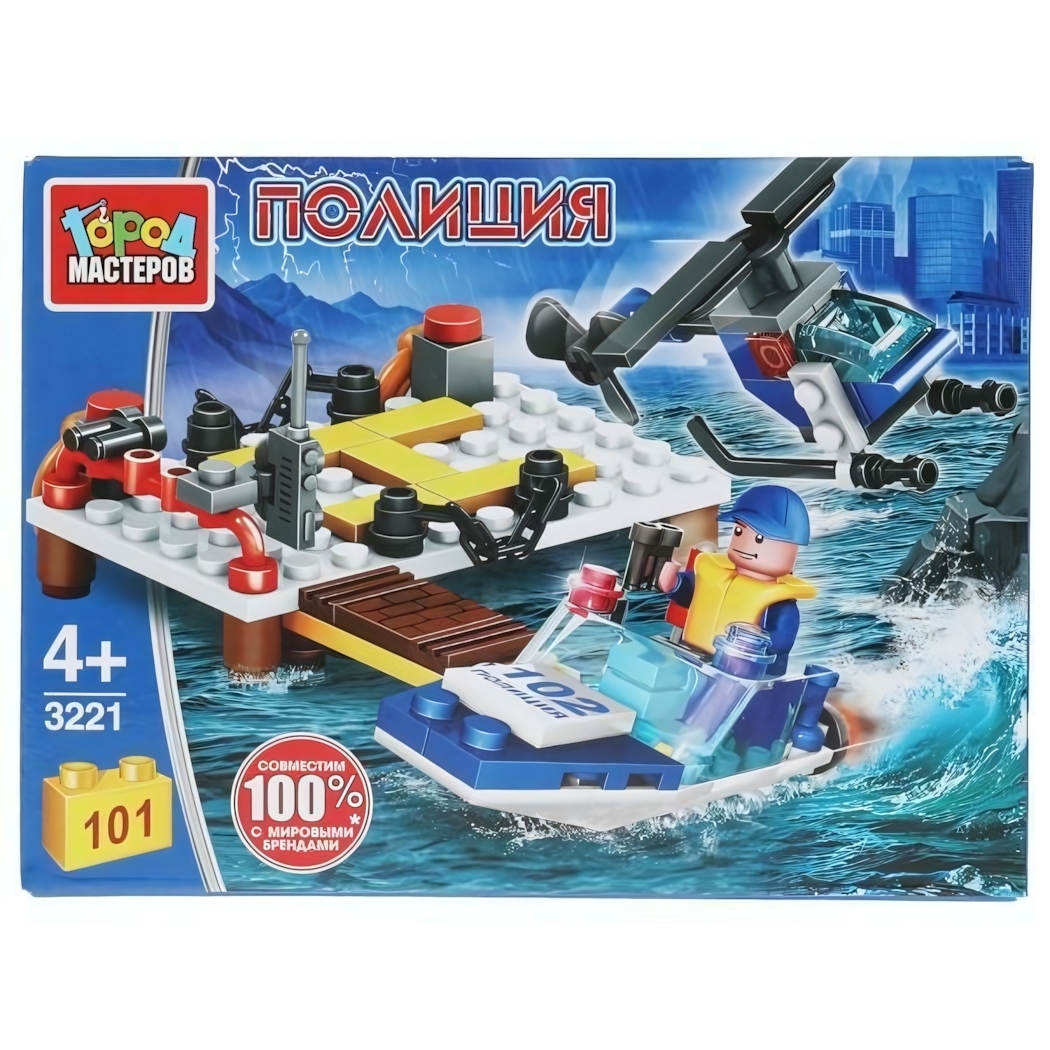 Это увлекательный набор из 101 пластмассовой детали, который позволит вашему ребенку создать реалистичную модель полицейского катера, вертолета и причала. Такой конструктор станет отличным подарком для юных защитников правопорядка, развивая моторику, мышление, внимательность и логику в увлекательной игре.