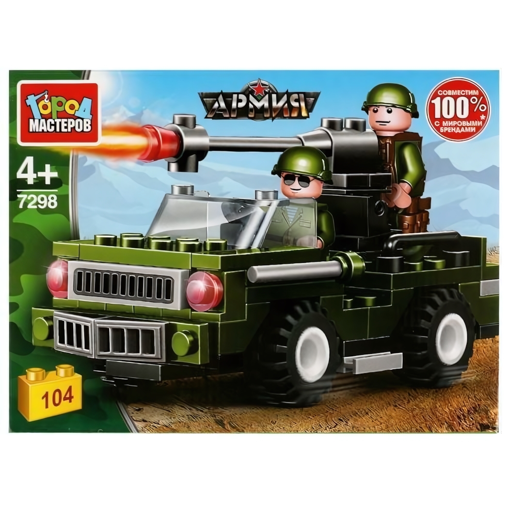 Пластмассовый конструктор 'Джип с пулеметом' из серии 'Армия' создан для маленьких героев, которые любят придумывать захватывающие истории. Этот набор включает 104 детали для создания реалистичной модели военной техники.