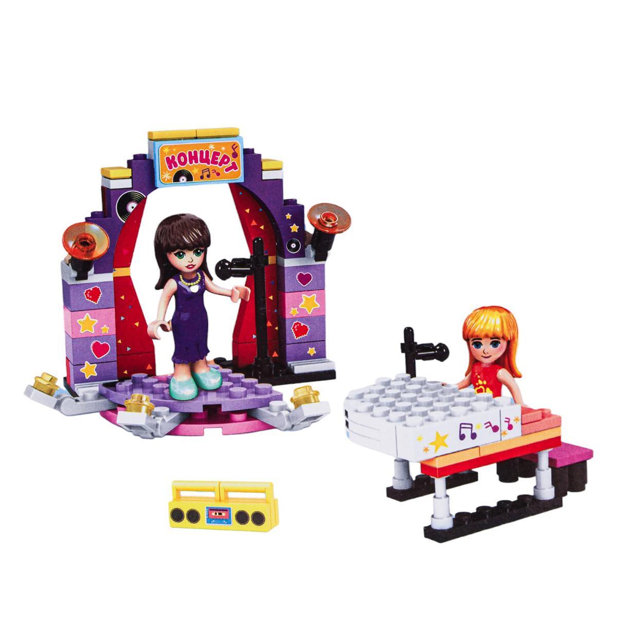 Этот яркий и функциональный конструктор из серии «Подружки» представляет собой полноценную сцену для спектакля, музыкальную площадку и игровые декорации. В набор входит 108 пластиковых деталей, 2 фигурки и элементы, совместимые с моделями международных брендов.