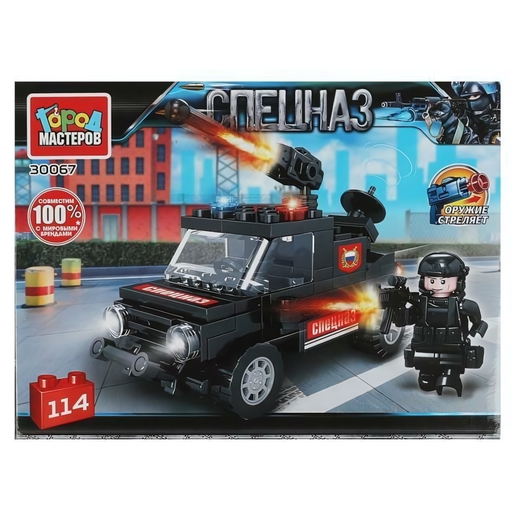 Конструктор 'Машина спецназа' 114 дет, стреляет, совместимость с брендами
