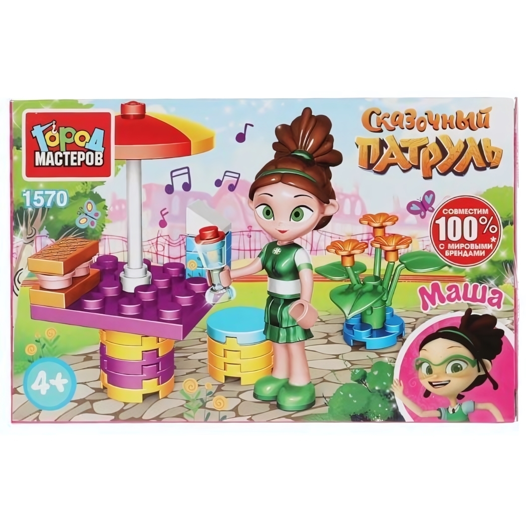 Этот пластмассовый конструктор из 36 деталей станет отличным подарком для юных поклонников мультсериала «Сказочный патруль». Он позволяет собрать яркие и красочные декорации кафе, что помогает ребёнку развивать мелкую моторику, логику, внимание и усидчивость через увлекательную игру.