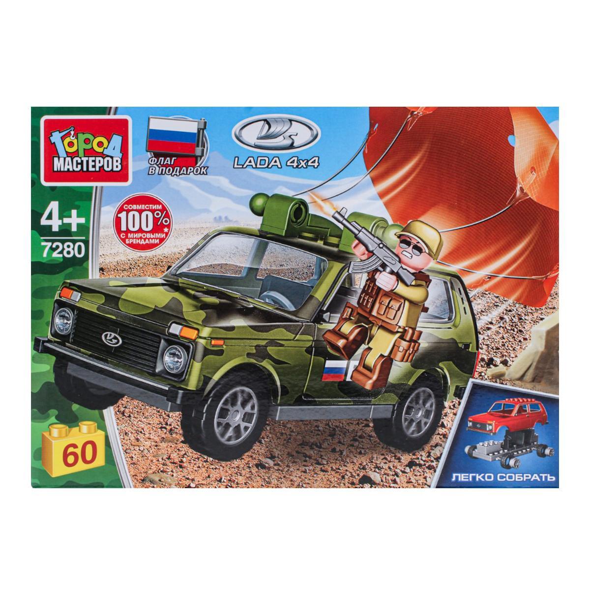 Конструктор «LADA 4х4 на парашюте», 60 деталей, фигурка солдата, совместим с мировыми брендами, Город мастеров