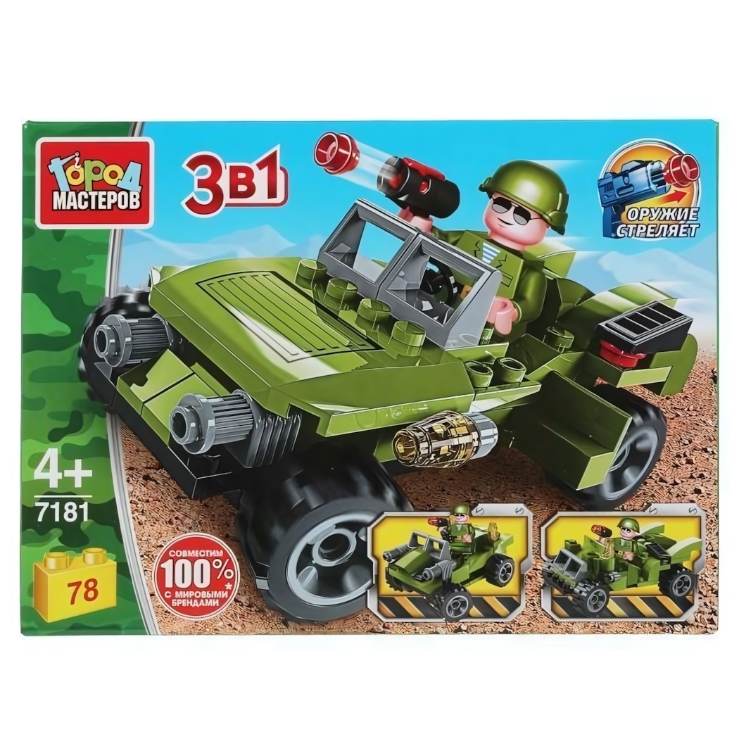 Конструктор «Джип» 3 в 1, 78 деталей с фигуркой, совместим с LEGO, «Город мастеров»