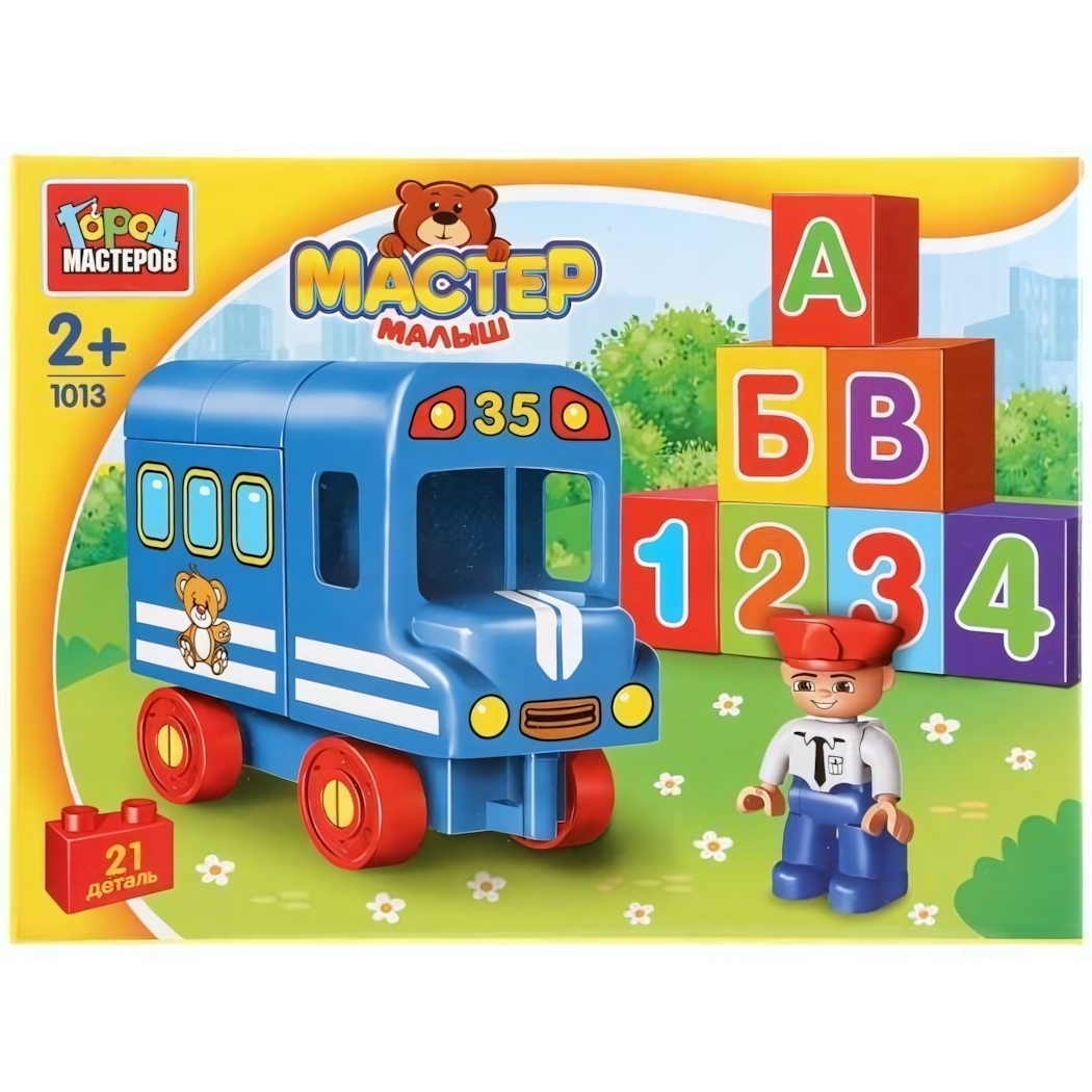 Конструктор пластмассовый 'Мастер Малыш', автобус с фигуркой, 21 деталь, для детей 2+