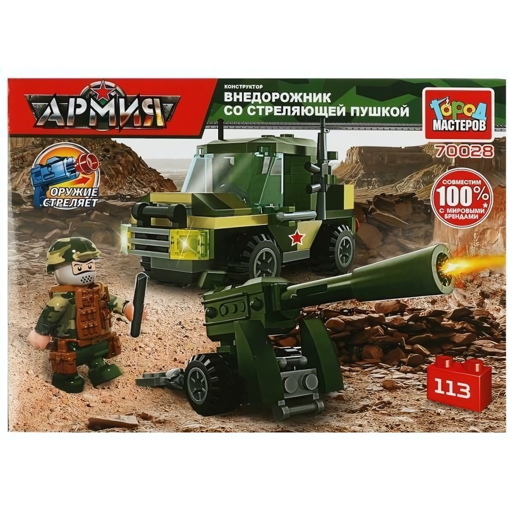 Представьте, как ваш ребенок собирает мощный внедорожник и стреляющую пушку, погружаясь в мир военных приключений. Этот конструктор приносит радость от творчества и игры, развивая фантазию и помогая ребенку стать настоящим героем.