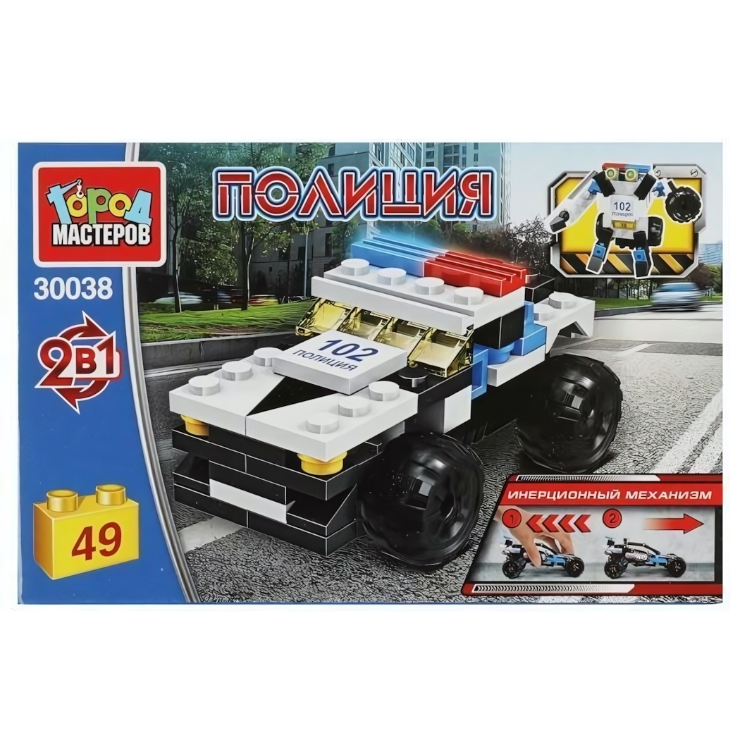 Конструктор 'Полицейская машина' 2в1, 49 деталей, инерционный механизм, пластик