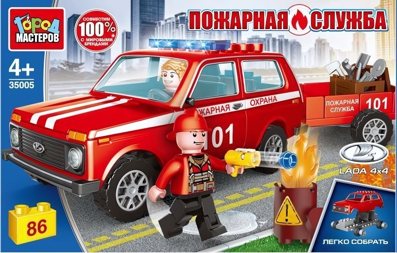 Яркий набор с пожарной LADA 4x4 и прицепом станет первым шагом в мир инженерного творчества. Реалистичные детали и продуманная конструкция позволяют легко создавать профессиональную технику даже дошкольникам.