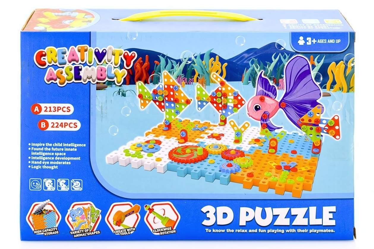 Конструктор подходит для детей от 3 лет и старше. Он включает в себя 213 пластиковых деталей, которые легко соединяются между собой. В комплект входит отвертка, что позволяет детям самостоятельно собирать и разбирать конструкции, развивая навыки работы с инструментами.
