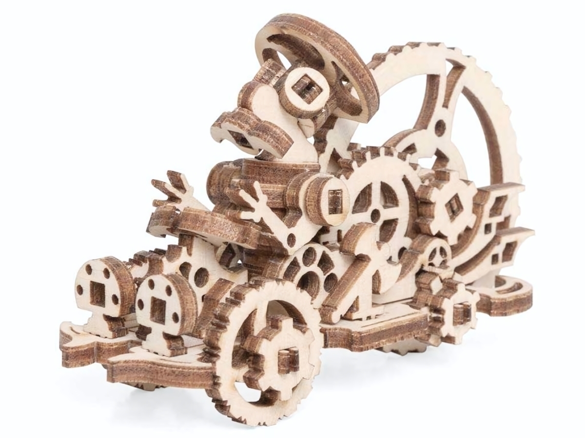 Размеры собранной модели составляют 80 х 30 х 50 мм, что делает ее компактной и удобной для игры. Все детали выполнены из качественной древесины, что обеспечивает долговечность и надежность конструкции. Конструктор "Апок" станет не только игрушкой, но и стильным элементом декора в детской комнате.