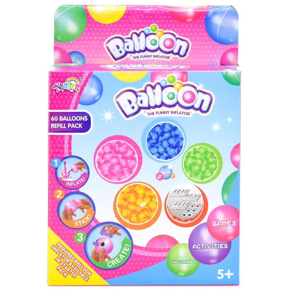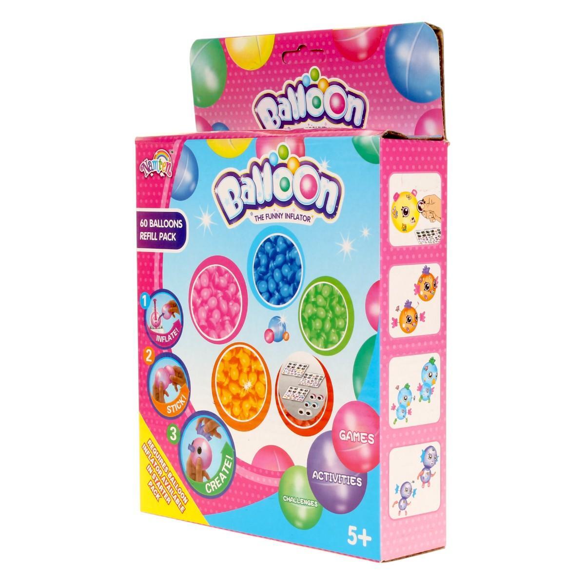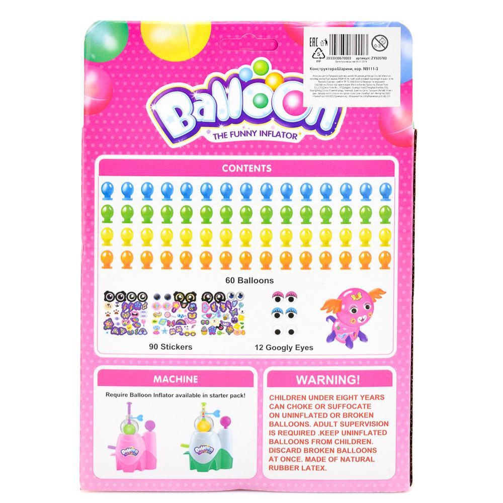 Рекомендован для детей от 5 лет. Все материалы гипоаллергенны и прошли сертификацию. В комплекте: шарики 5 цветов (розовый, голубой, зелёный, жёлтый, оранжевый), листы с наклейками, пластиковые глазки разных размеров. Насос и дополнительные аксессуары продаются отдельно.