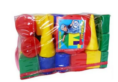 Конструктор для малышей »Юг-пласт« 28 деталей в сумке ПВХ, крупные цветные блоки, легкий пластик